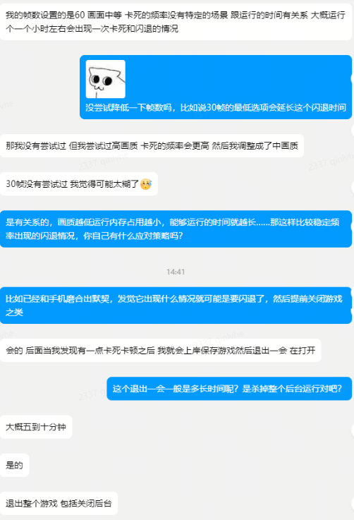 尽管有潜水员表示,在发觉游戏出现掉帧时,及时保存、退出游戏即可避免猝不及防的闪退,在短暂休息5-10分钟后,即可继续游戏1小时左右。但我们认为,这并非是一个稳定的游戏体验,也不建议大家在这样的情况下进行游戏。