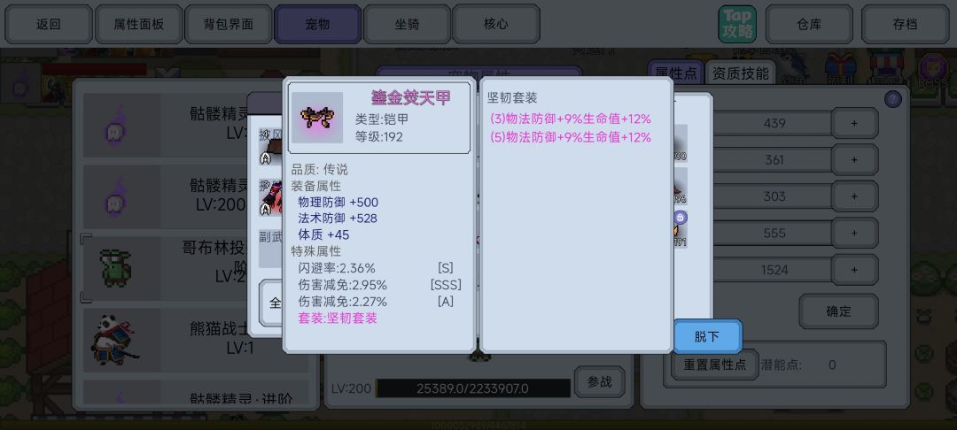 宠物: 在保证存活率的同时,也要保证装备的属性,可选: