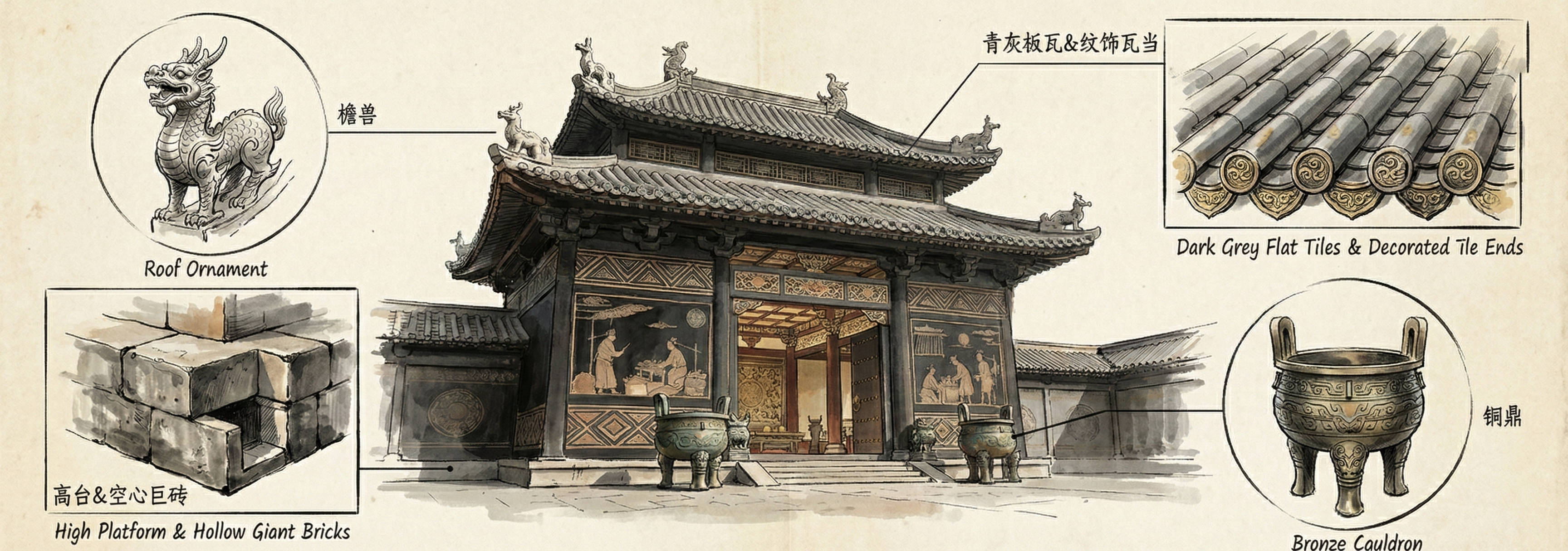 l 建材革命:青灰板瓦、纹饰瓦当、空心巨砖等工艺突破,彻底告别“茅茨土阶”的原始时代。