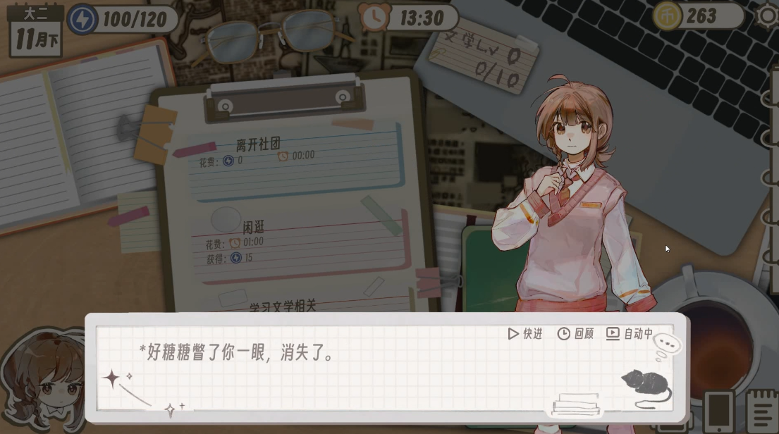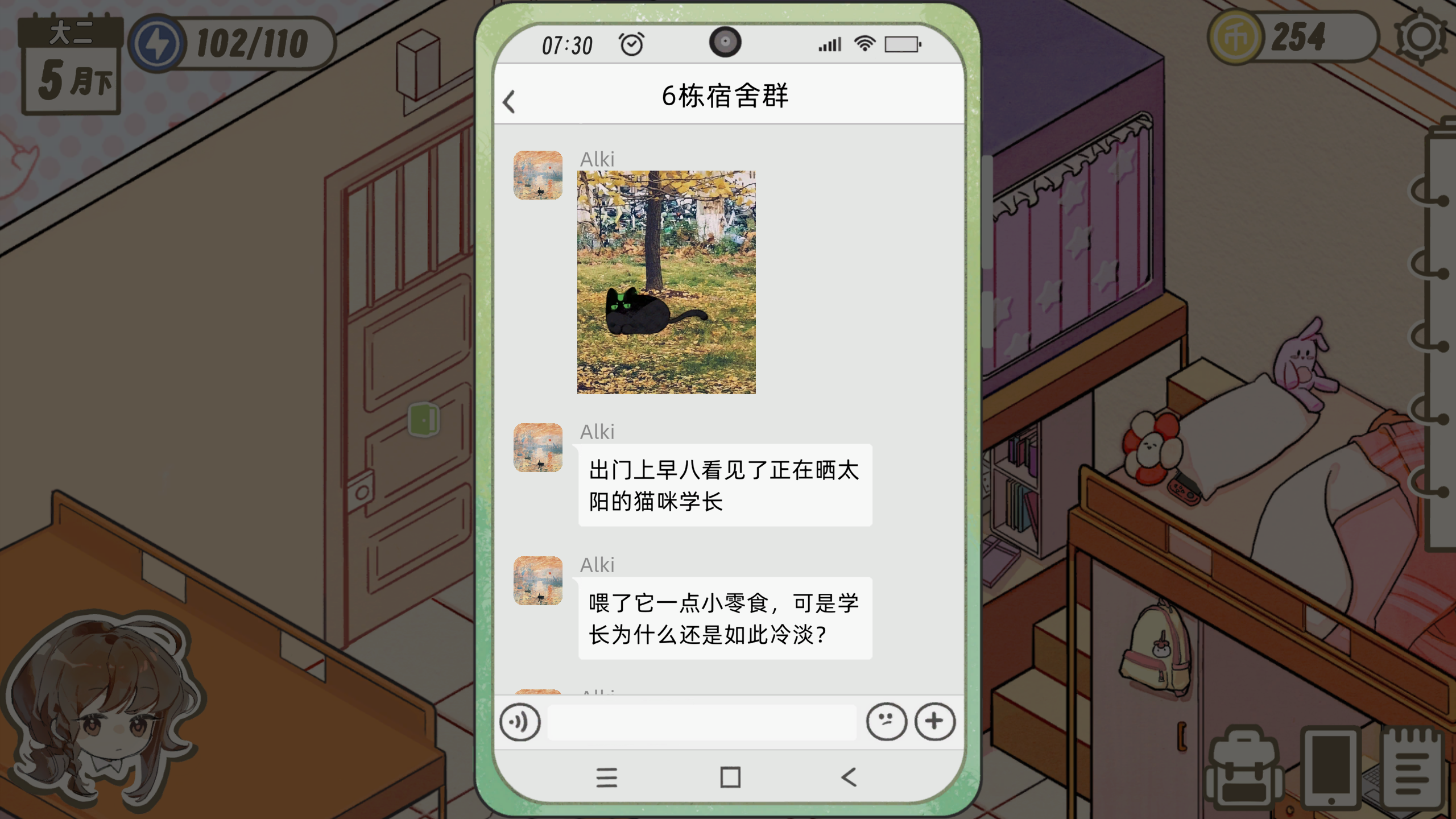 在游戏中,上课时或闲逛时,猫咪学长也会若无其事地出现在教室里。