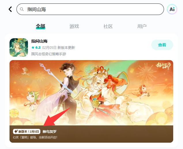 第一步:在TapTap中搜索《指间山海》,点击下方的图片即可进入“预约新版本”界面。