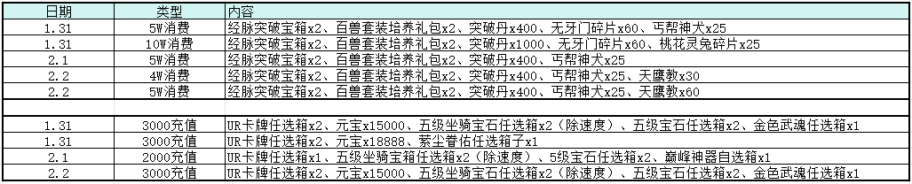 1月31日活动内容轮换公告