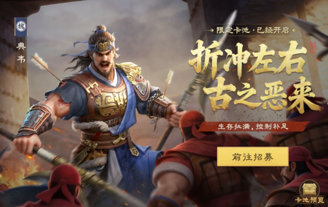 典韦限定卡池将在开服后立即开启,共持续3天。