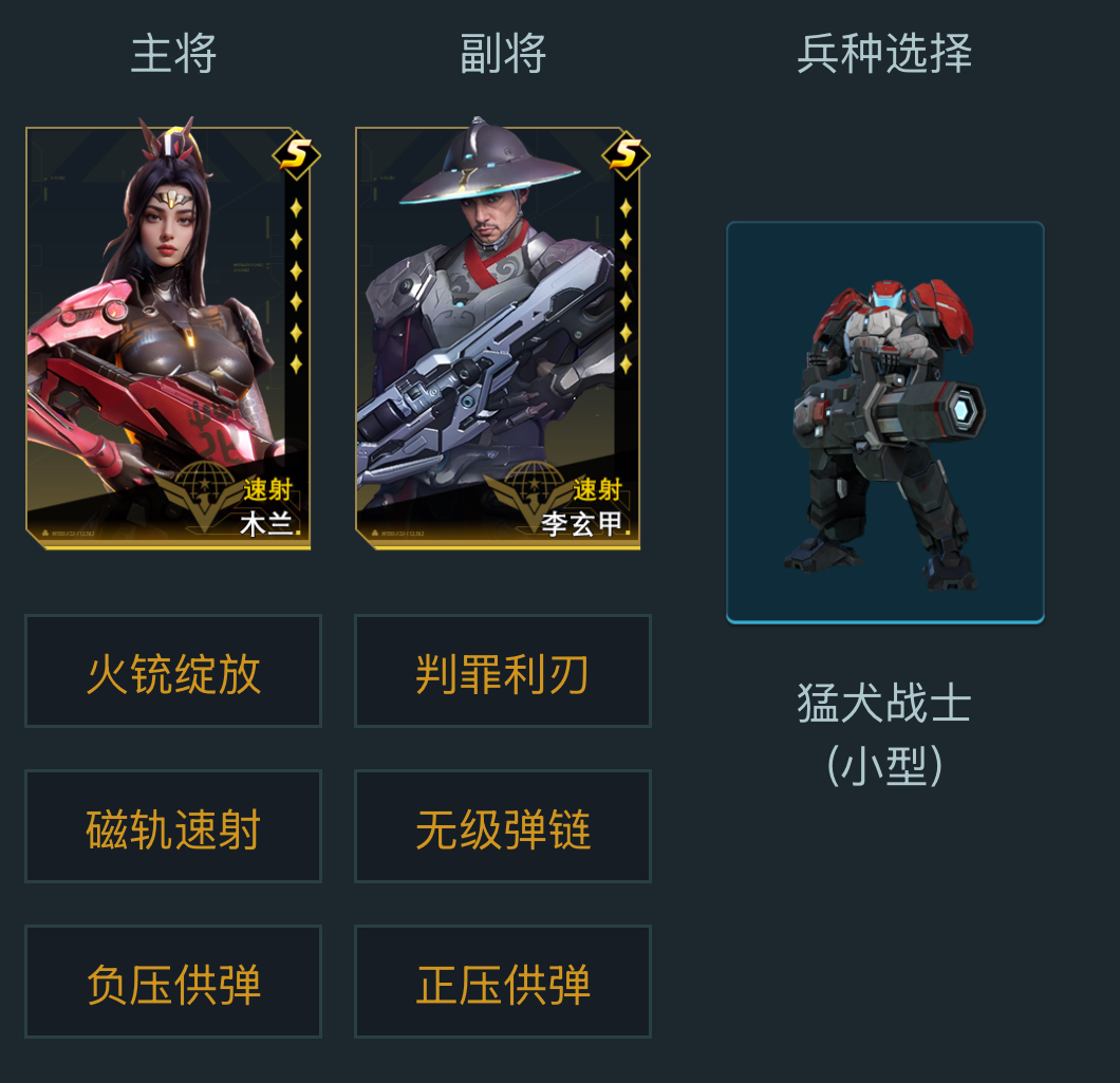 选择小型时,大型战斗选择猛犬战士卡安全距离输出,骚扰落单可使用隐刺机兵绕后偷袭敌人薄弱军团。