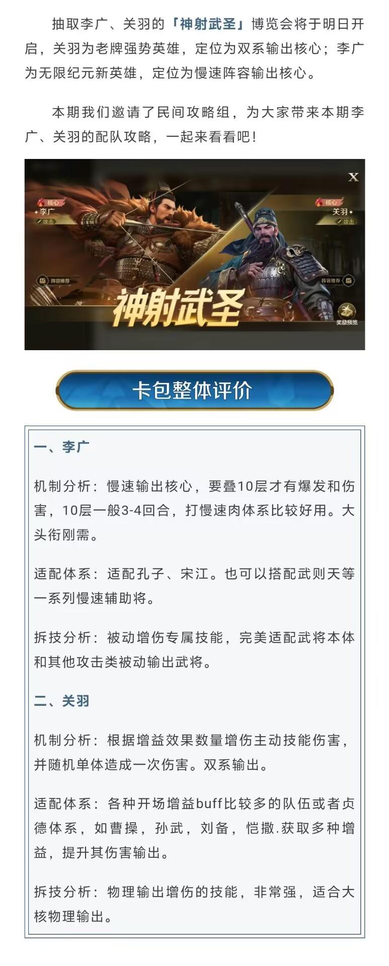 攻略分享丨「神射武圣」博览会:李广、关羽配队攻略分享