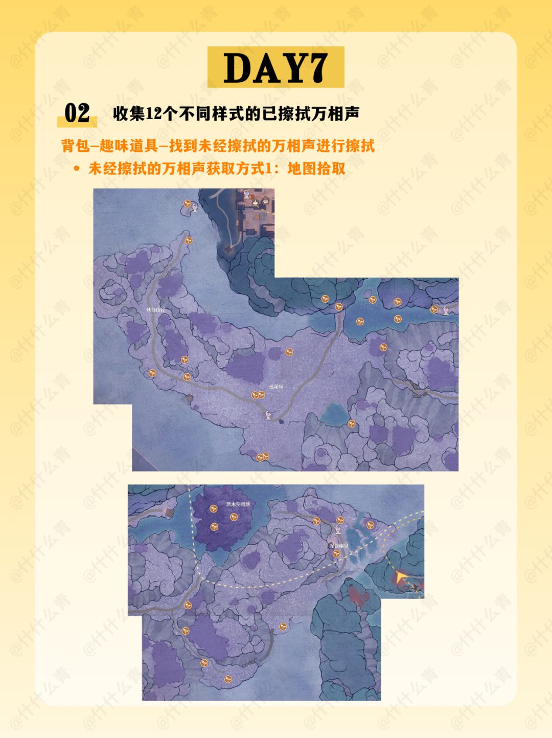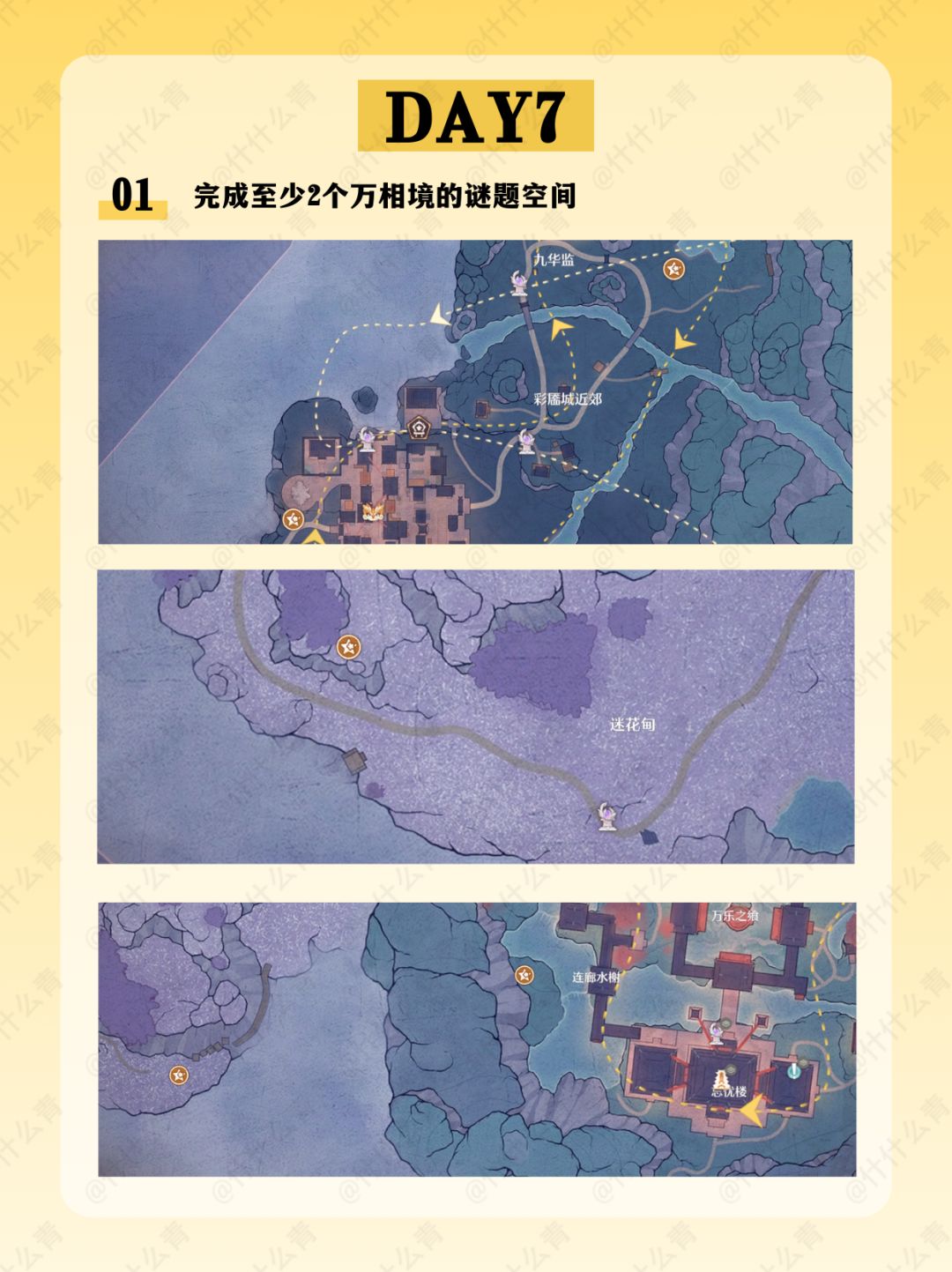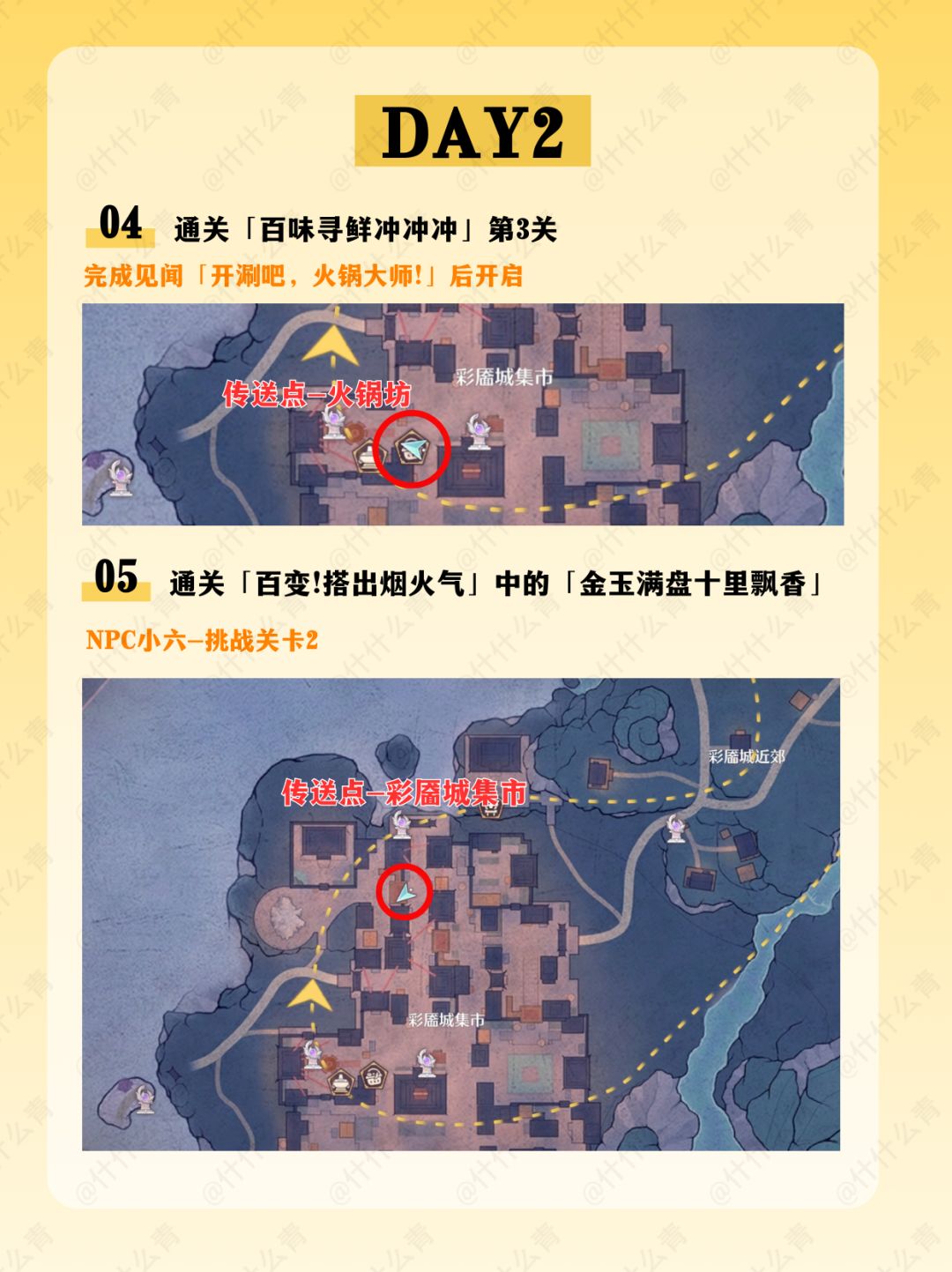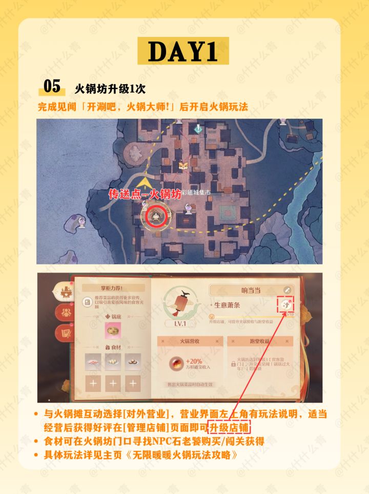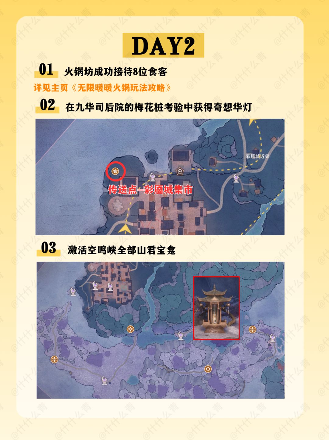 千靥万相长夜赋/奇想华灯/艾热闹/与打铁花的匠人们合影/火锅坊升级/接待食客/空鸣峡山君宝龛/金玉满盘十里飘香/清洁胭羽鹦鹉/摊贩莲阿靓/邀请1只栖息于伊赞之土的动物伙伴到家园做客/万相境的谜题空间/万相声点位/万相渡浮生/福运锵锵/开匣见宝/百变!搭出烟火气