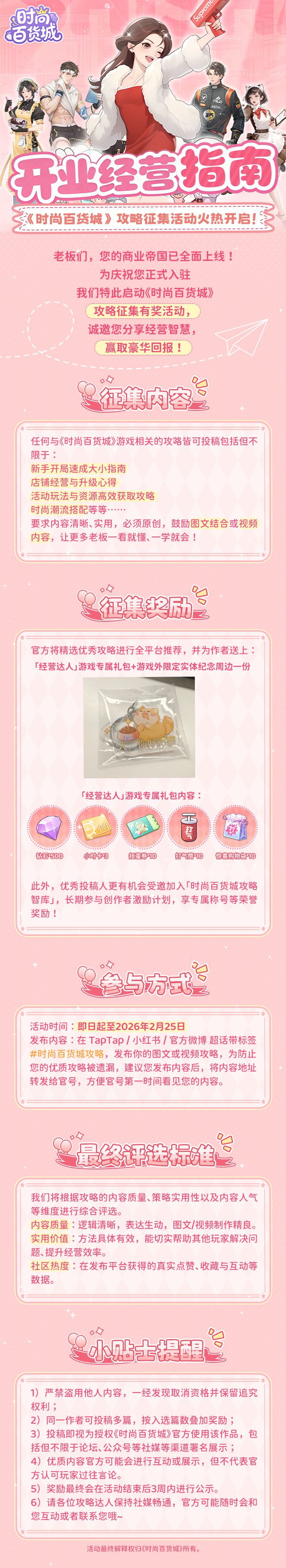 您是否已有一套独家“商业圣经”?或是藏着不少“破局心法”?别让智慧沉寂,快来参加 #时尚百货城攻略 征集活动,用您的经营智慧,兑换重磅豪华奖励!