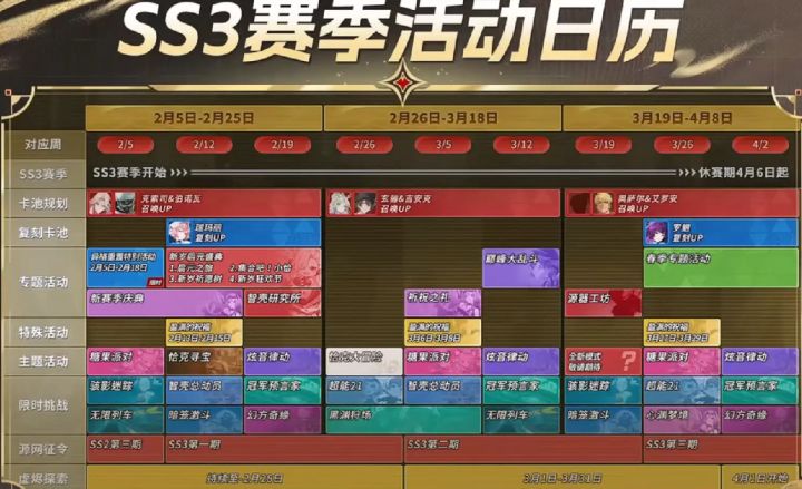 6、排期,2月5克索斯+伯诺瓦,2月26吉安克+玄丽,3月19奥萨尔+艾罗安