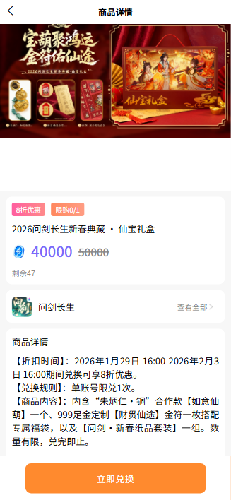 ● 获取方式:前往【雷霆游戏会员APP】兑换仙祖五阶新春礼盒,游戏内兑换后填写收货地址问卷,包邮到家!