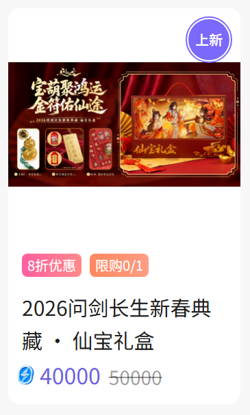 转眼间,新年的脚步近了。为了感谢各位仙长过去一年的陪伴,我们携手百年铜艺世家“朱炳仁·铜”,打造【2026问剑长生新春典藏 · 仙宝礼盒】,目前已开放领取!