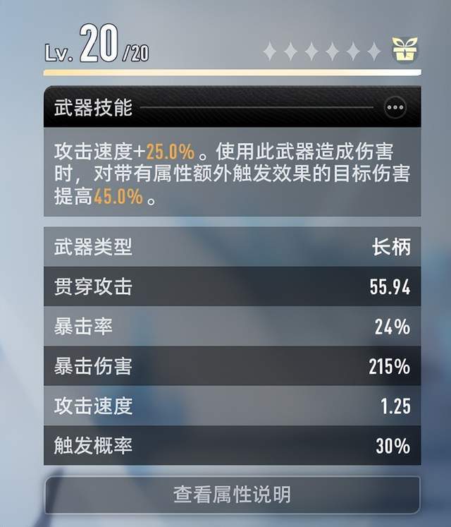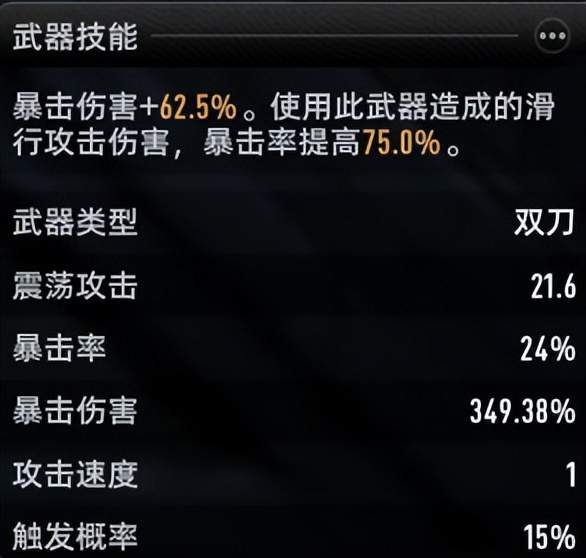 武器方面,因为刻舟是武器大师,全能选手,所以选择也非常多样,刻舟大招继承的只有武器属性,没有武器技能,所以我们在选择武器时更要看武器的属性是否适配,双爆词条自然是最香的。双刀銮金岁月,爆伤词条再打上双刀魔之楔【锋刃圆舞】再加50%爆伤,刻舟爽吃。