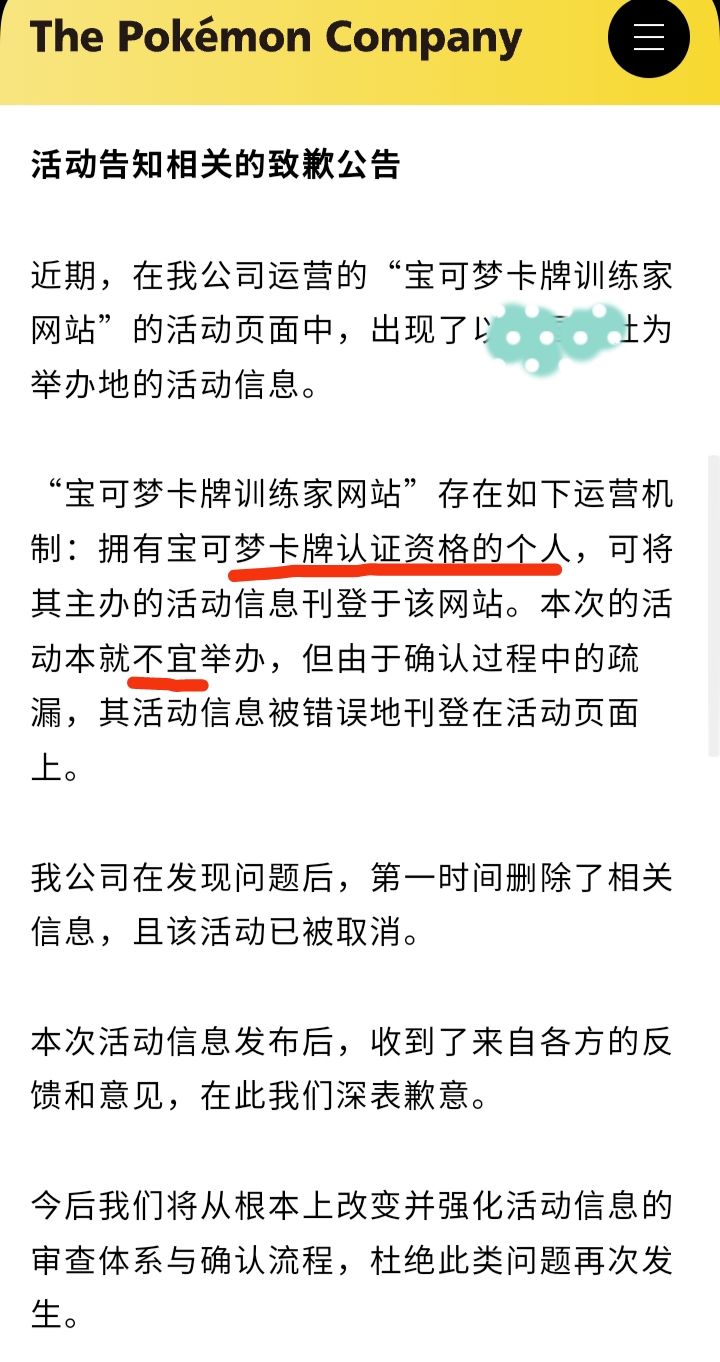 官方公告称:涉事网站存在漏洞,可以不经审查地被拥有宝可梦卡牌认证资格的个人刊登活动内容。