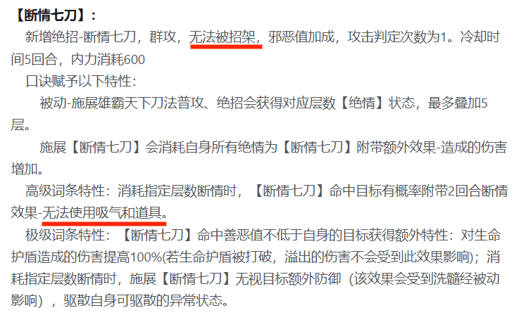 绝情绝义:强化绝情斩,不怕挡和反击以及增加输出能力;