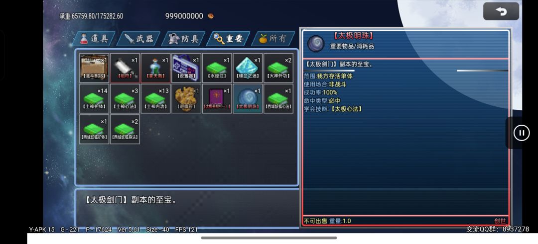 太极公子爆太极明珠、太极明珠碎片、武器等。