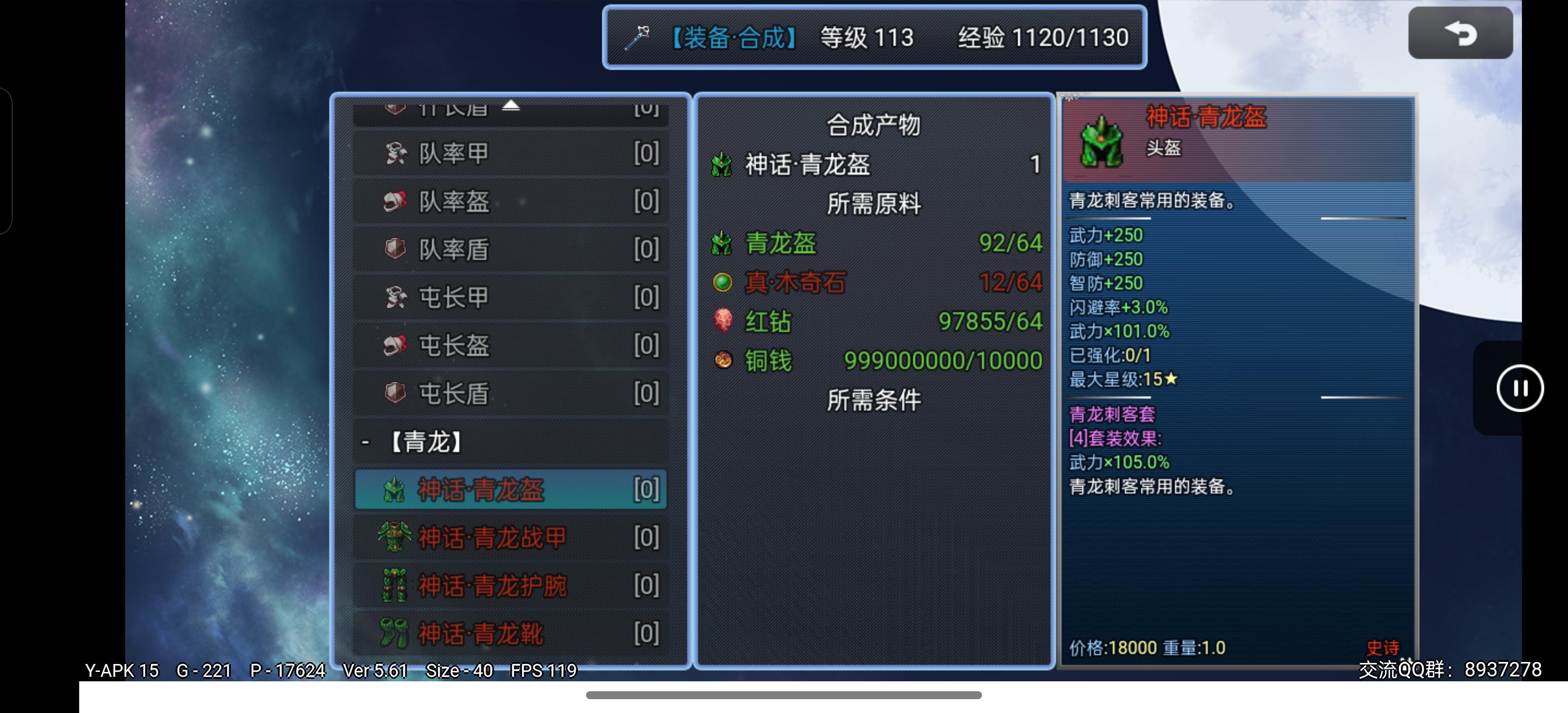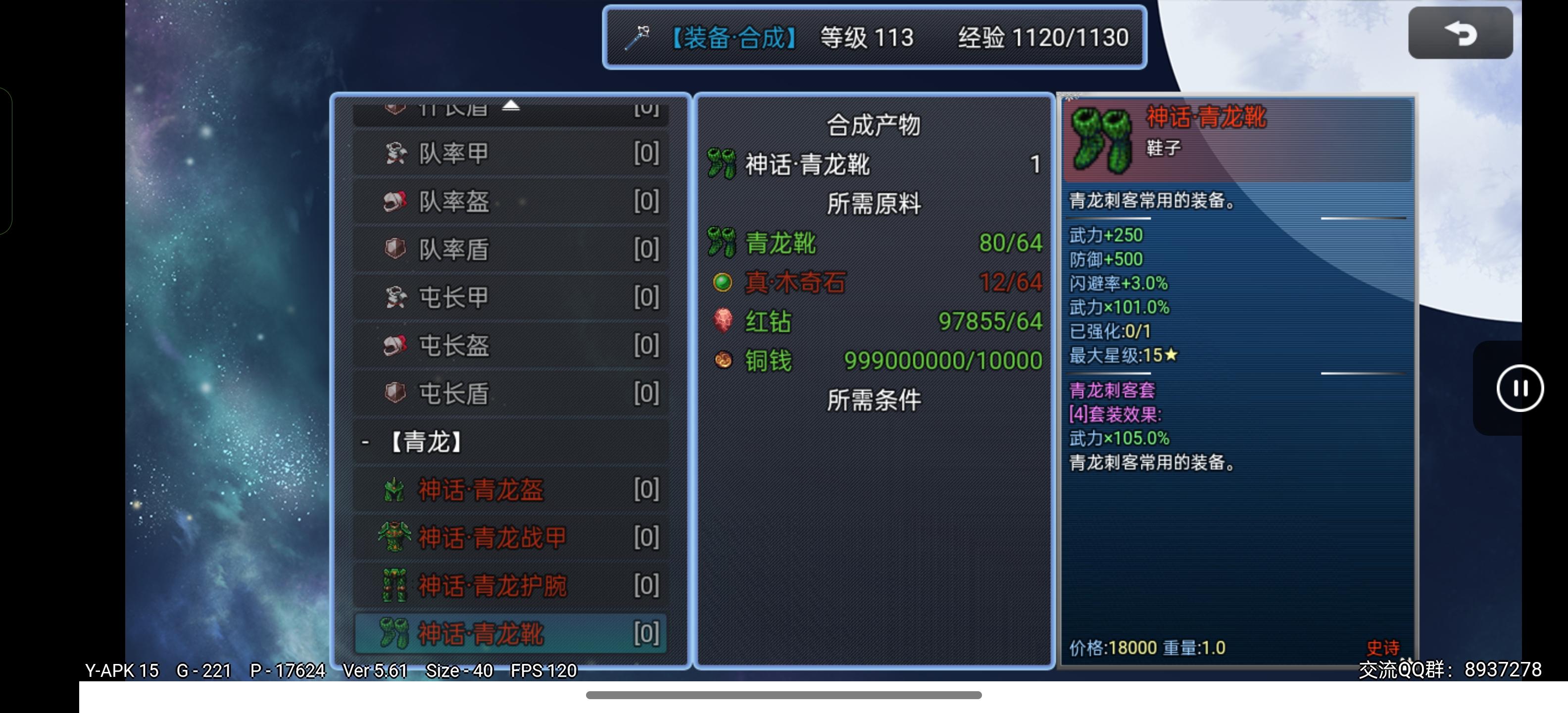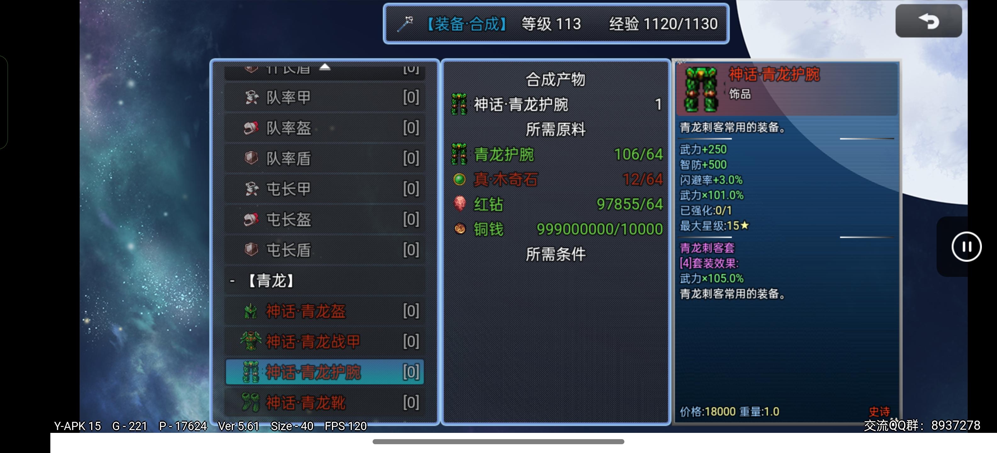太极门副本小怪爆装备,可以合成青龙套,目前最强武力套装