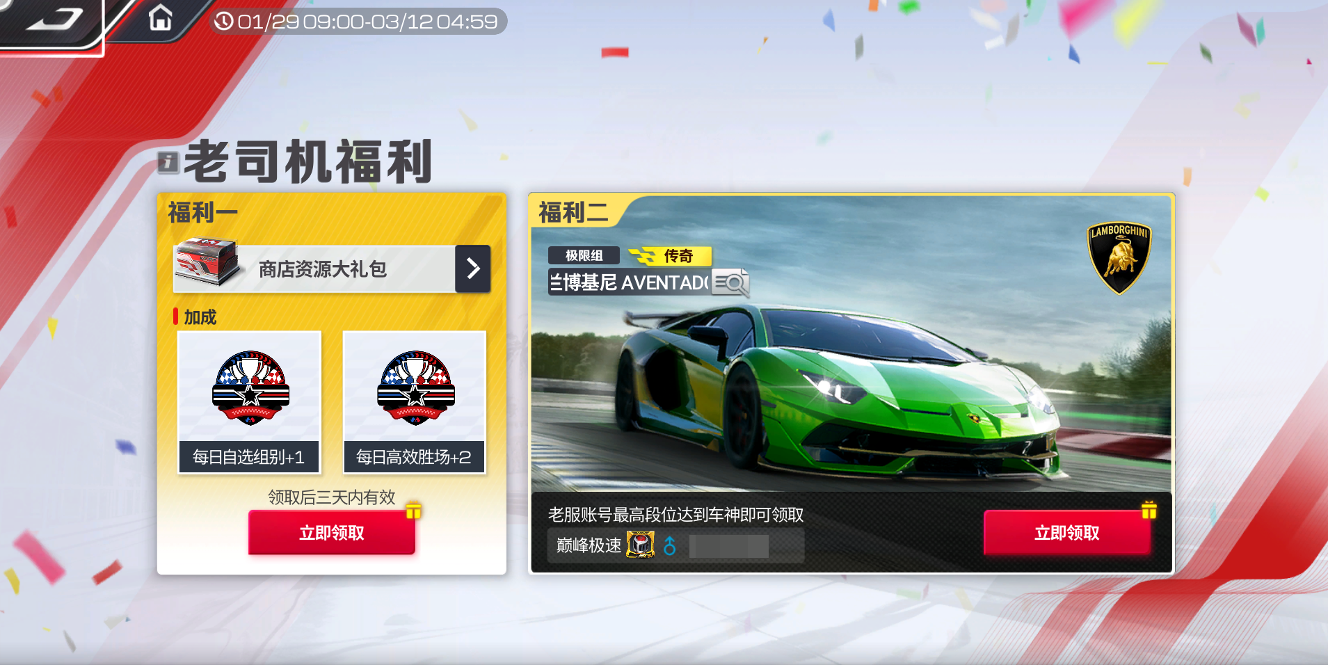 活动只开放至3月12日 05:00,时间有限,神车无限!这种白嫖顶级配置的快乐,小可不允许任何车手错过!快来一起在排位赛里飙个痛快吧!