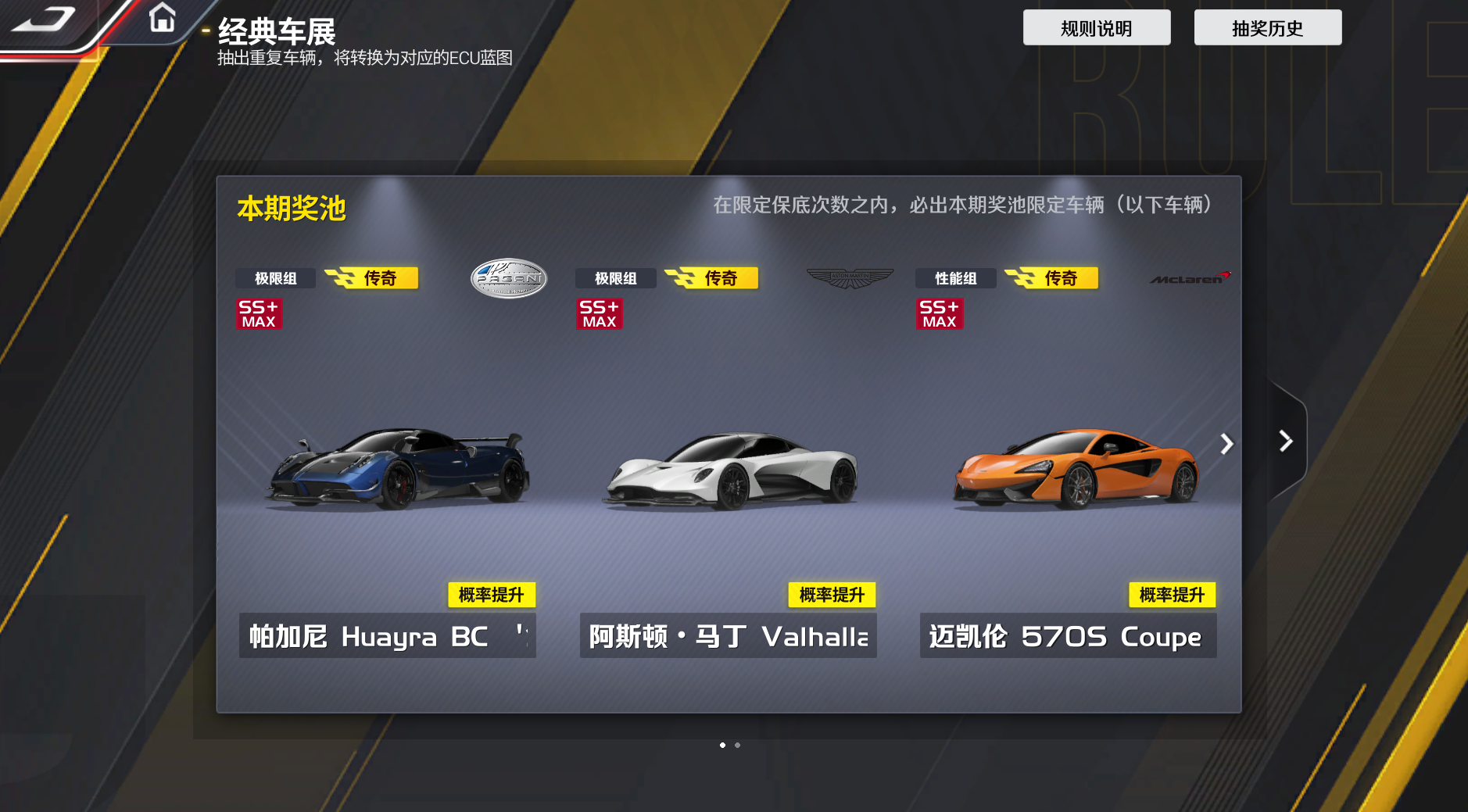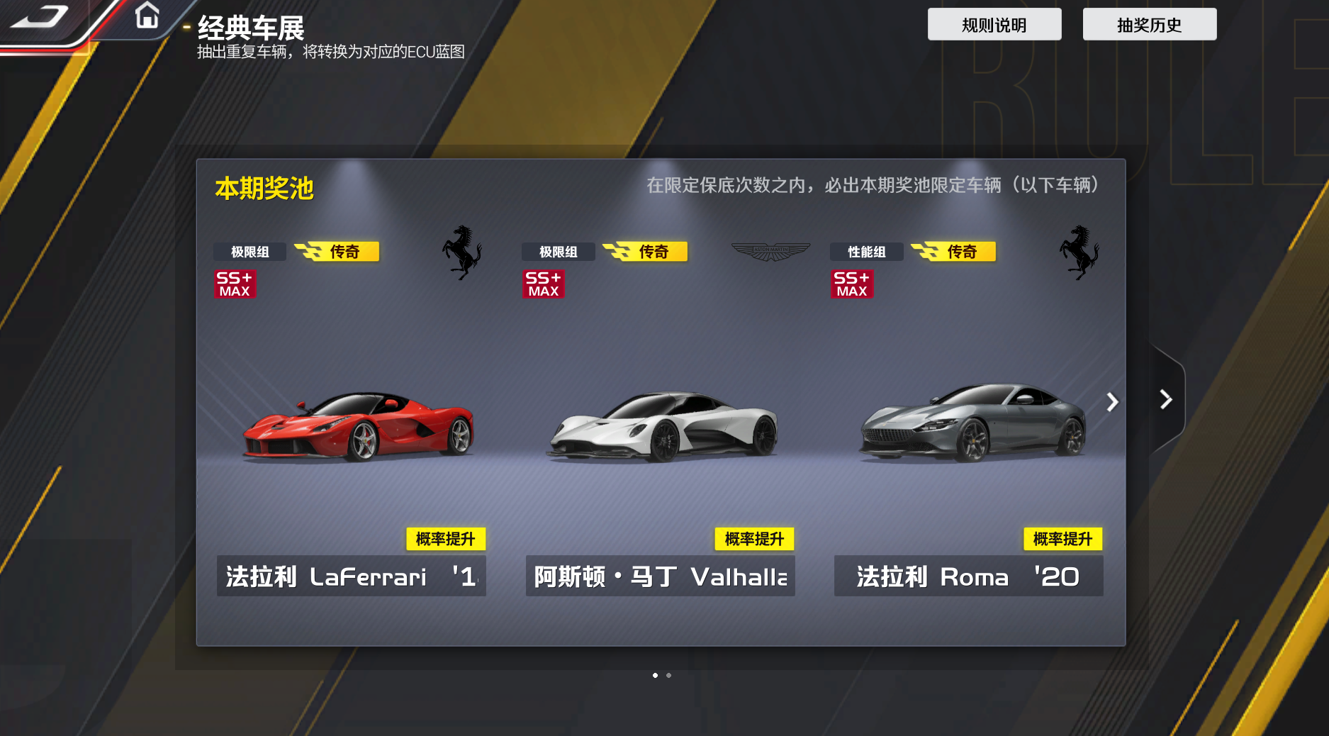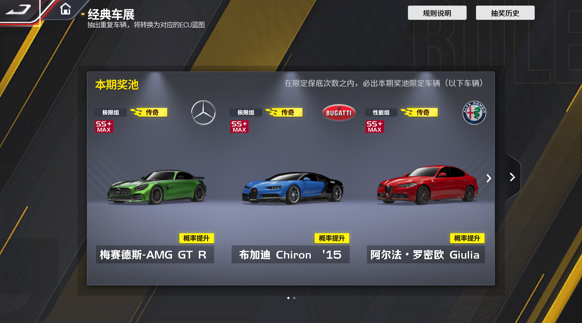 车手们新用户创角后,即可开启【经典重现】的3个奖池,每个奖池内70抽必得传奇车辆,过往神车轻松抱回家!而且小可要特别强调,这些奖池都是为新手量身优化的,成长曲线丝滑!
