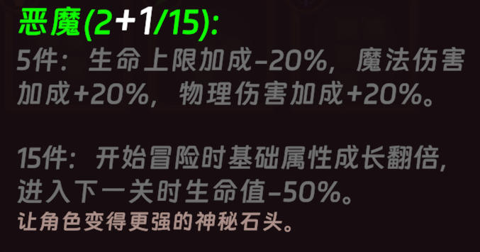 前期来说,套装效果是大于主副词条的,所以主副词条是伤害或者速度类的就能用,套装推荐:15迅捷+5恶魔+5精准/魔力/探险
