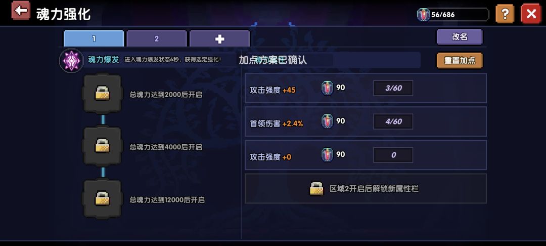 勇者等级来到A+级解锁灵魂链接系统,把武器挂到树上可以获得魂力,魂力可以强化魂力属性。