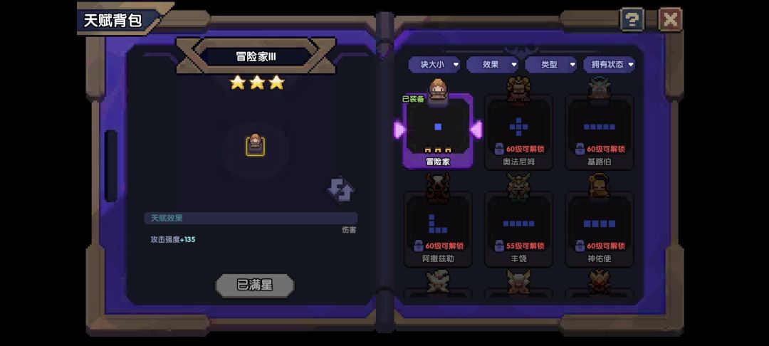 通关第9关开启天赋系统,将冒险家升至3星装备上就行。在开启资源副本前我们开着体力锁开荒,最高只有15级无法解锁第二个天赋。