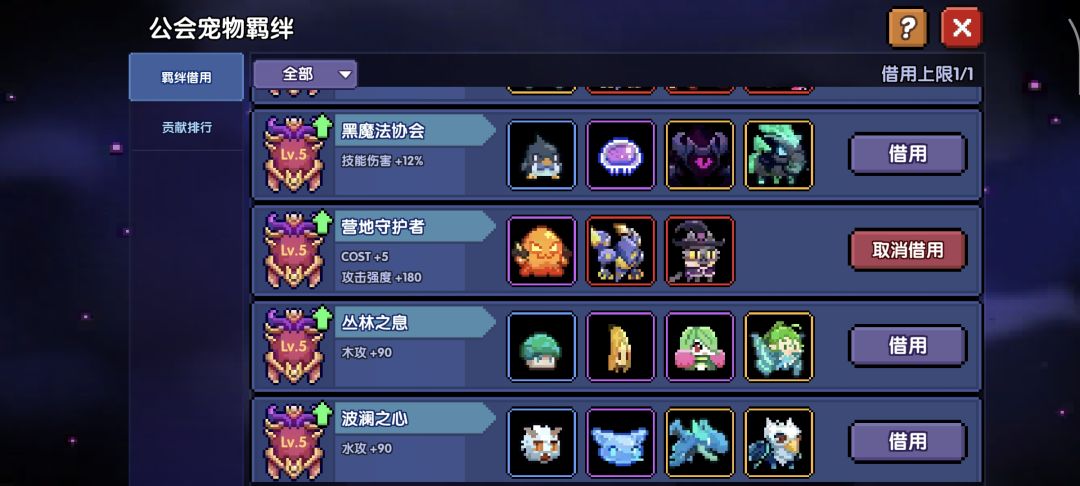如果公会宠物羁绊的营地守护者羁绊等级高于你的营地守护者羁绊一定要借公会的。