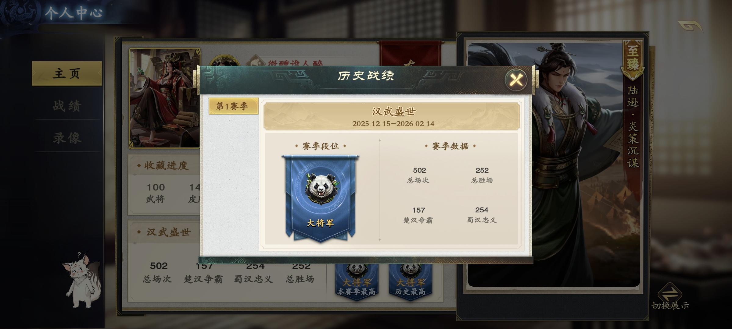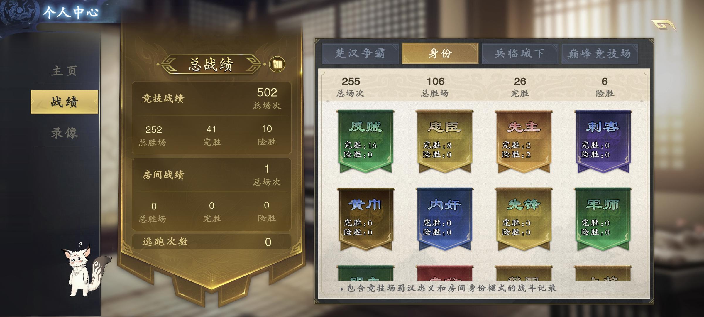 比如:玩家游玩武将的频率,具体的武将胜率,各个身份的胜率,玩家是不是话唠,作战方式偏保守还是激进,玩家最喜欢的皮肤,武将的展示等等…