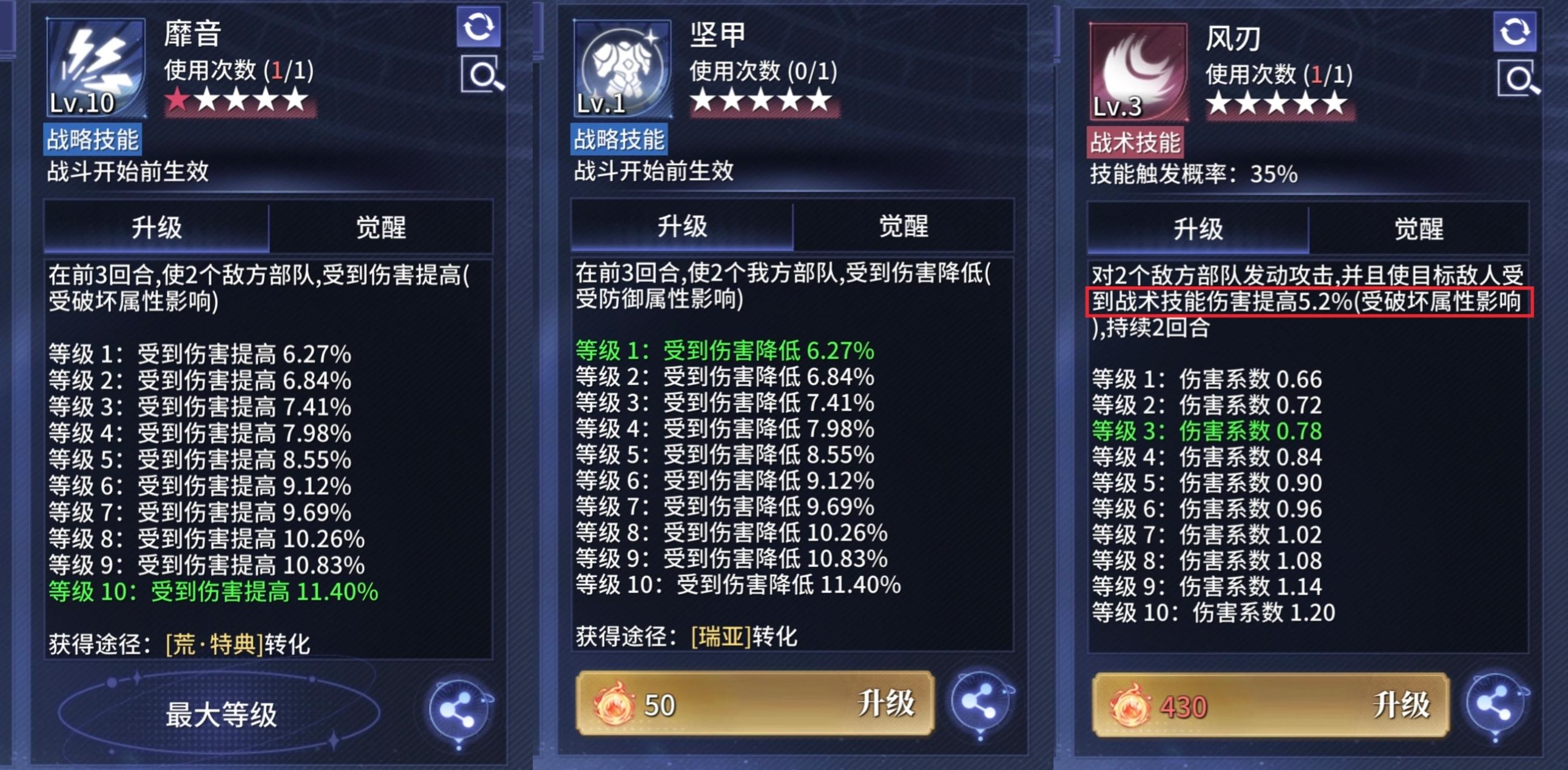比如461破坏的斯莉德携带靡音,那么靡音的技能效果将提高至