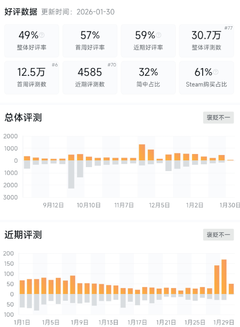 前面被数毛社验证的问题就在这次打的补丁被解决了。虽然风评有所提升,但可以看到的是总好评率还是仅有49%。