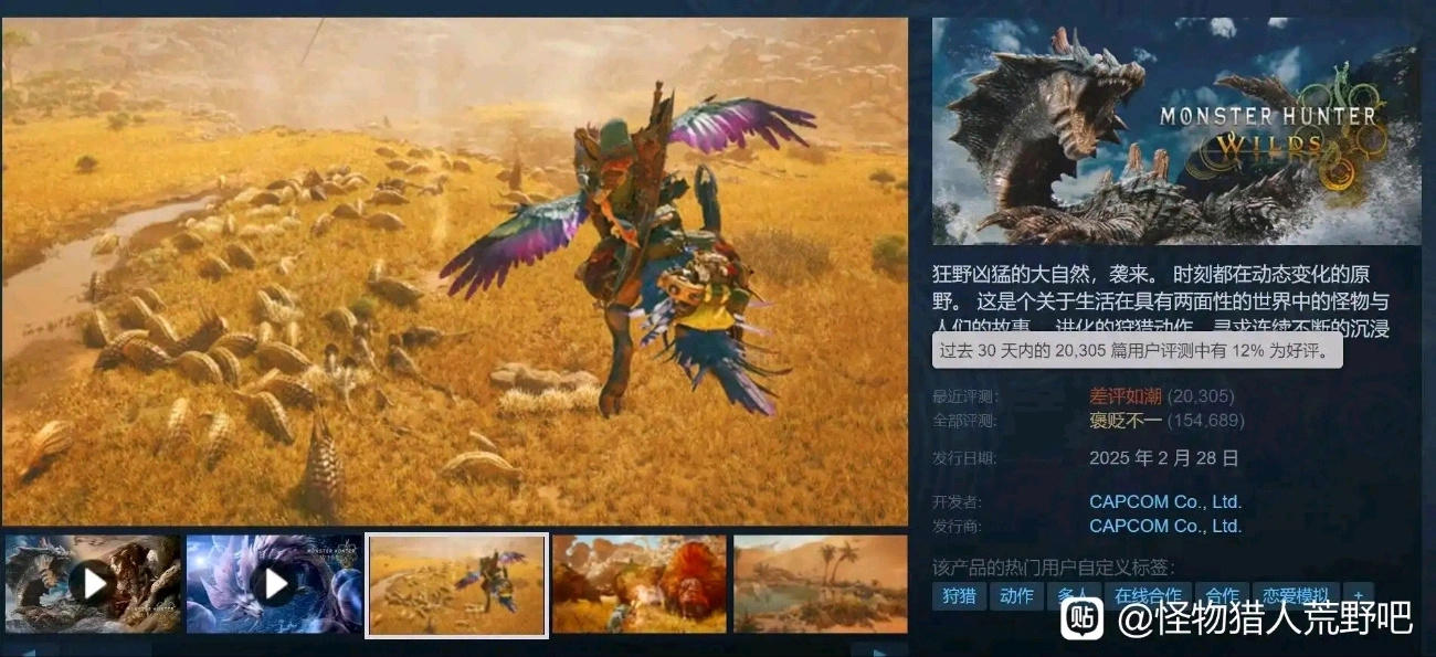 《怪物猎人:荒野》补丁上线后,Steam好评占比数量有所回升。