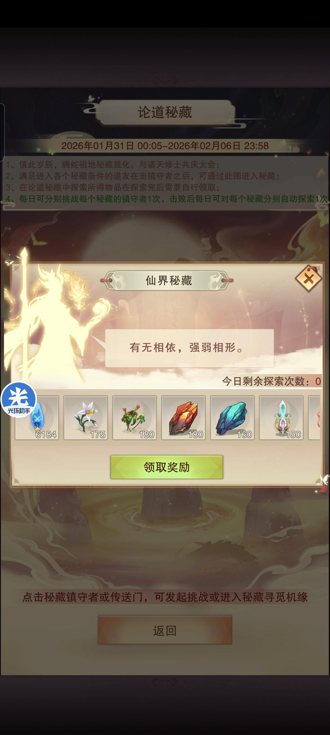 12.领取论道密藏奖励