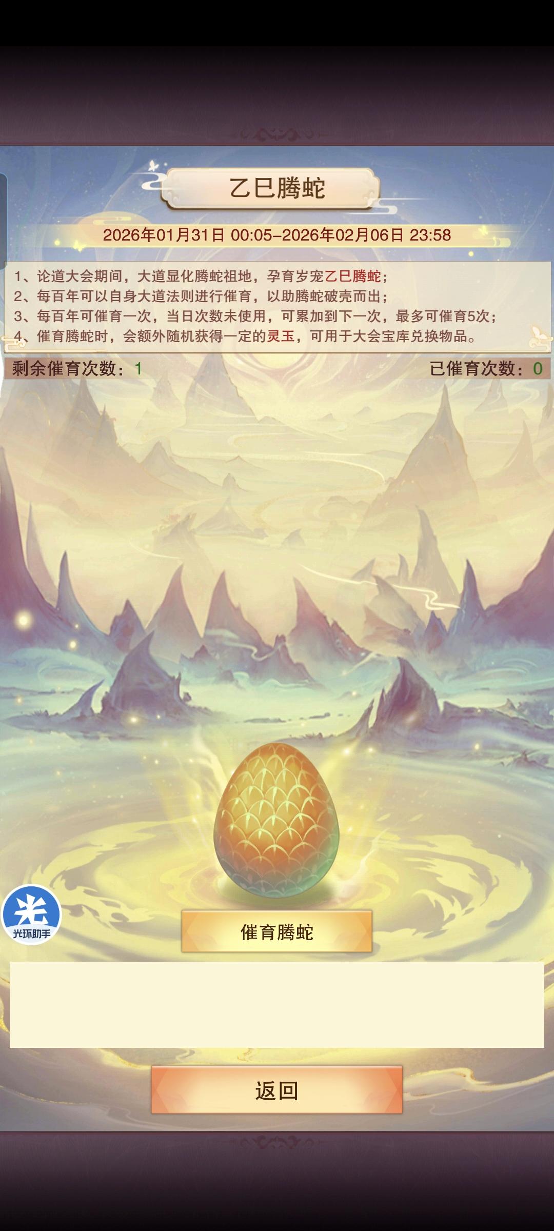 2.点击乙巳腾蛇,进入如下界面,点击催育腾蛇