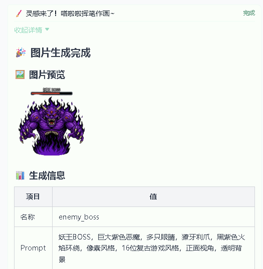 我知道,你可能会笑它生成的画面太简陋了。但别忘了,它还能生成美术素材,所以我再多说一句话,多等5分钟,整个游戏画风就直接翻新了。