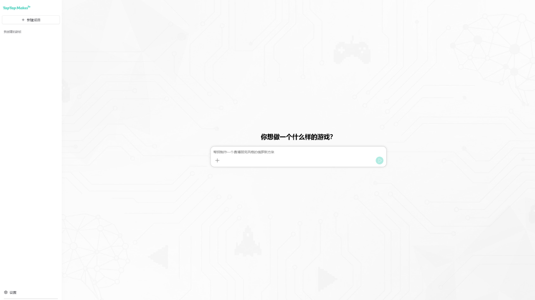 倒不是小看它的意思,主要是感叹这页面太干净了,比我脸都干净。没有什么复杂的教程、引导,基本就只有一个文本对话框,和一个问题:你想做一个什么样的游戏?