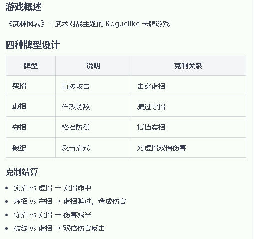 以卡牌对战这个项目为例,我的要求是以武术对战为主题,有实招、虚招、守招、破绽四种牌型。和之前一样,TapTap制造很快自行完善了我的需求,设计了四种招式的克制关系、架构了项目的底层工程。