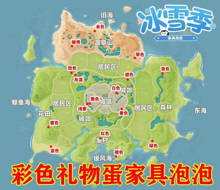 心动小镇冰雪季隐藏彩色礼物蛋温泉蛋拍照和家具摆件泡泡共计16个,每天拍照对应一个隐藏摆件每日更新。求点赞关注收藏