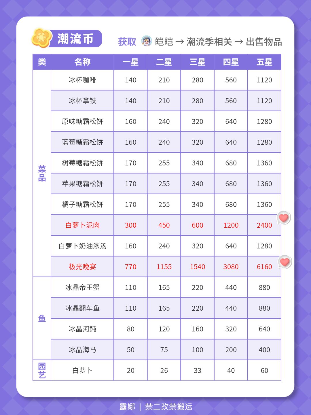 冰雪季 全图鉴攻略 食谱 冰晶鱼 价格表