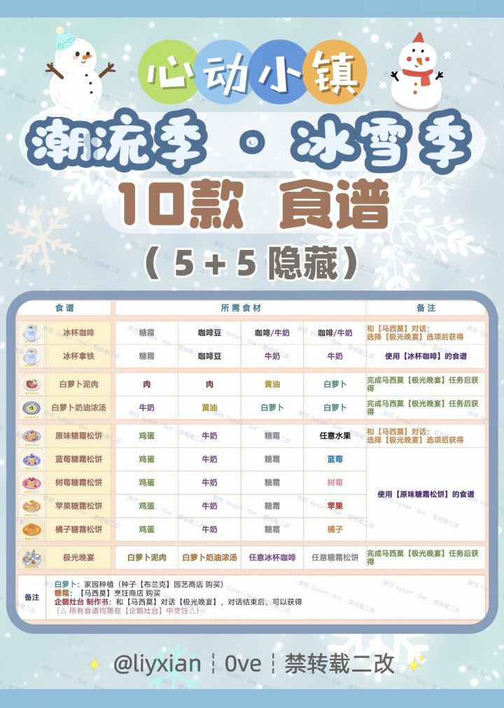 【心动小镇】冰雪季 10款食谱 全攻略