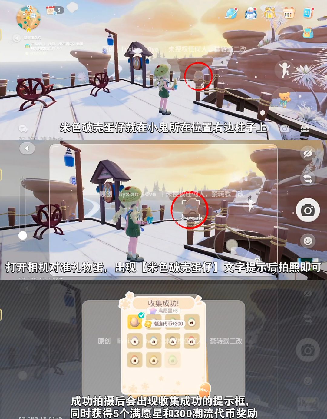 每找到一个礼物蛋并拍照收集,可以获得5个满愿星和300潮流代币奖励。