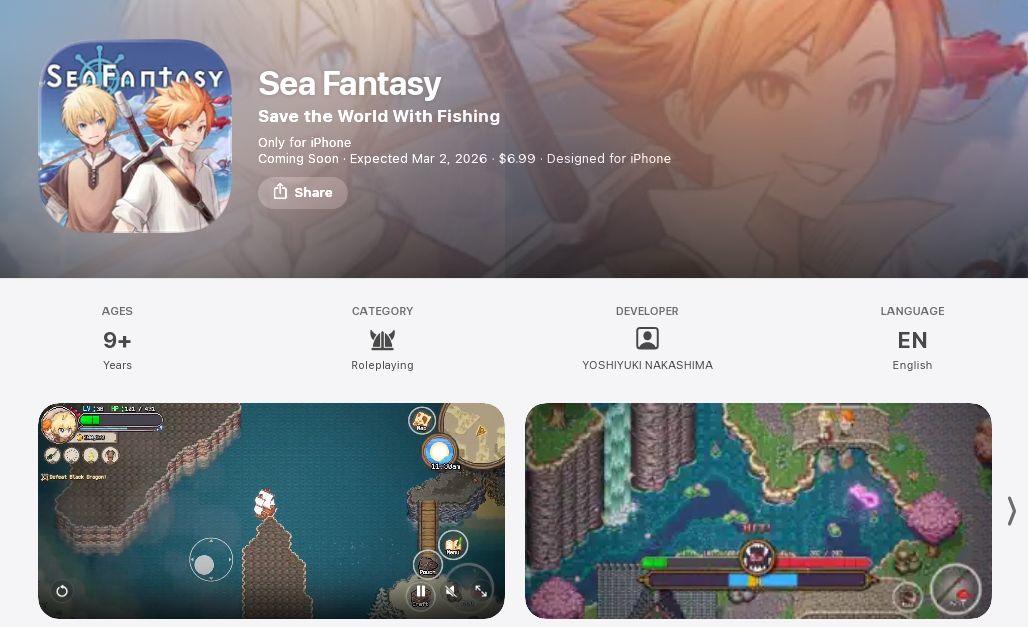 8)钓鱼JRPG海洋幻想(sea fantasy)正式定档3月2日,2月期间海外安卓端预计会进行一次测试。