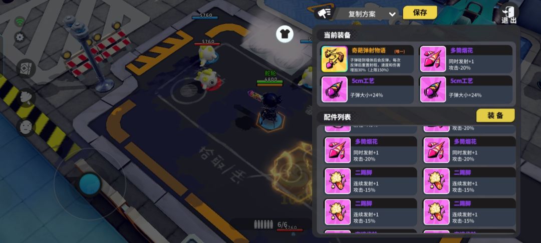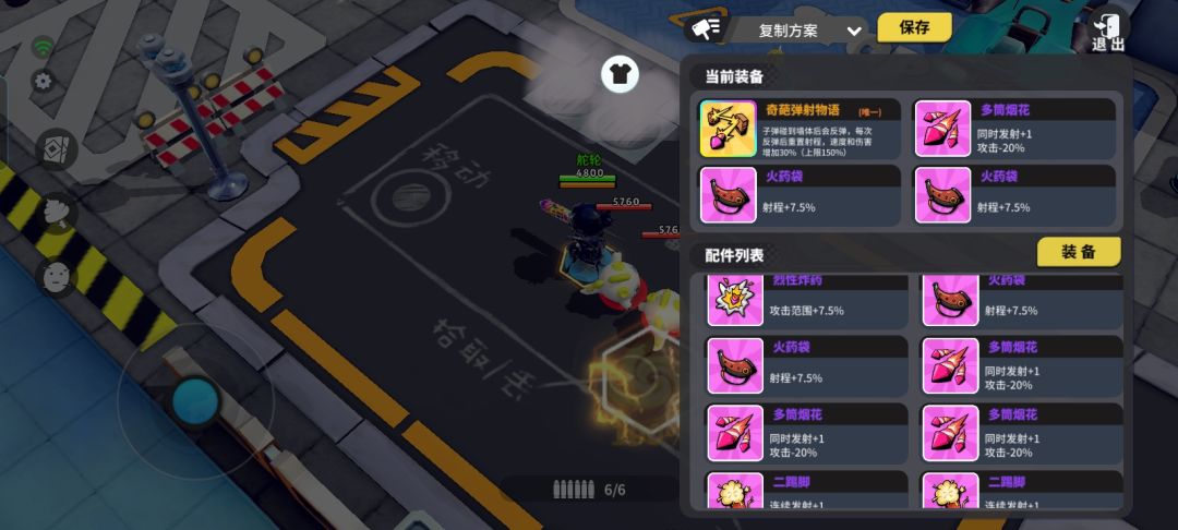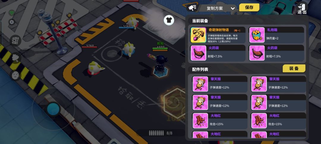 评价:此搭配的想法是加长子弹的弹射距离,让我们的子弹拥有更长的距离撞到之前撞不到的墙