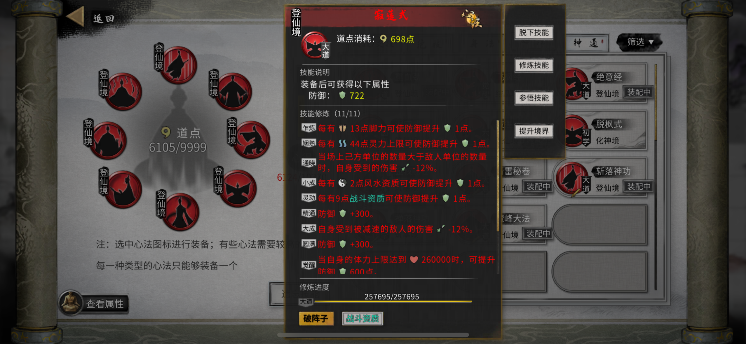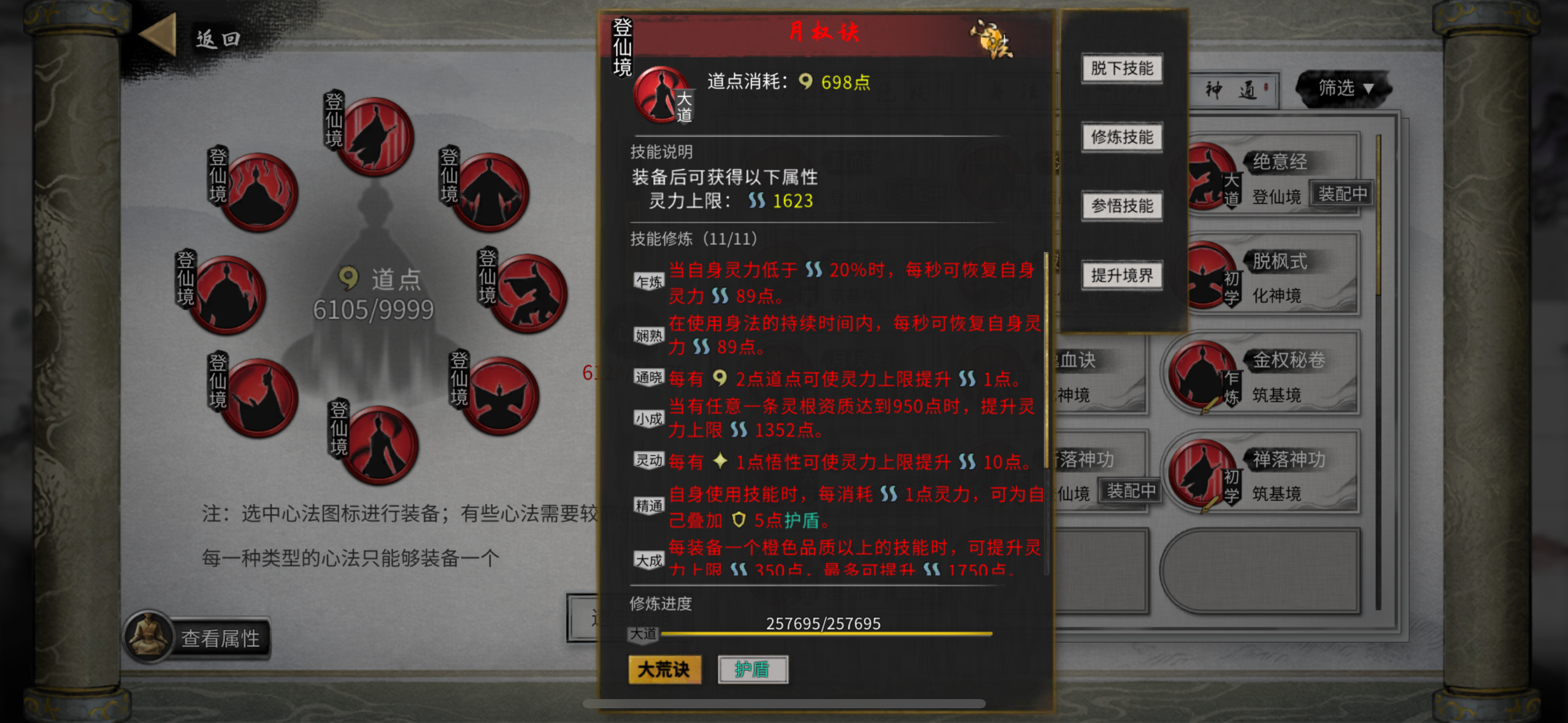 录:每个 师傅 好友 道力 技艺资质 遗忘一个技能加念力(共计五条) 拥有道侣加念力 任意技艺资质达到加念力,剩余四条任意(不携带丹药,丹药词条不需要)