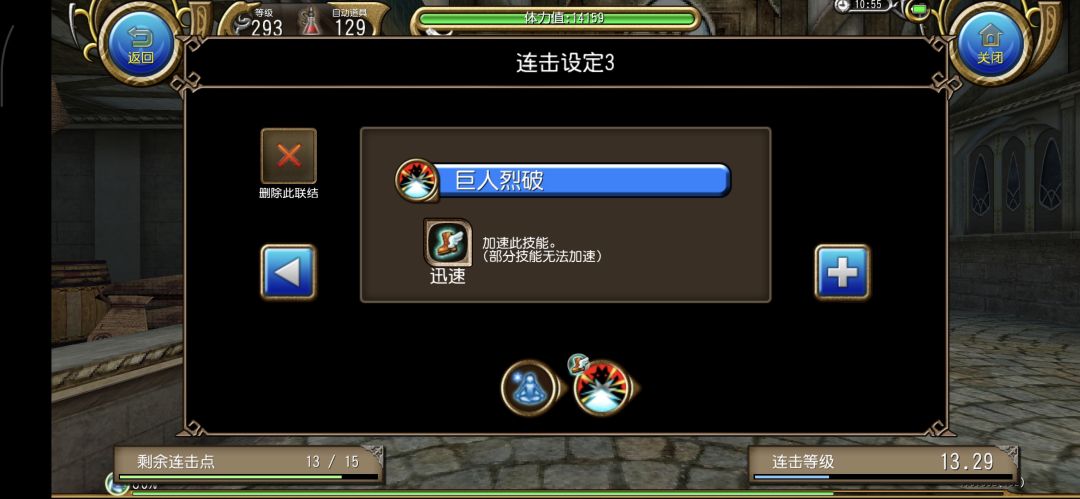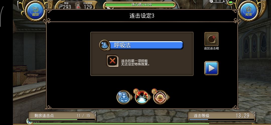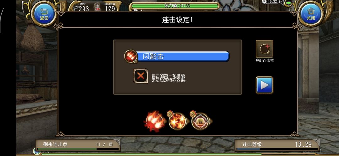 但是裂破是蓄力500蓝,释放0蓝,所以释放裂破的连击哪怕是增幅没断连,也只会比之前多100蓝,想要进一步优化手感可以不断连