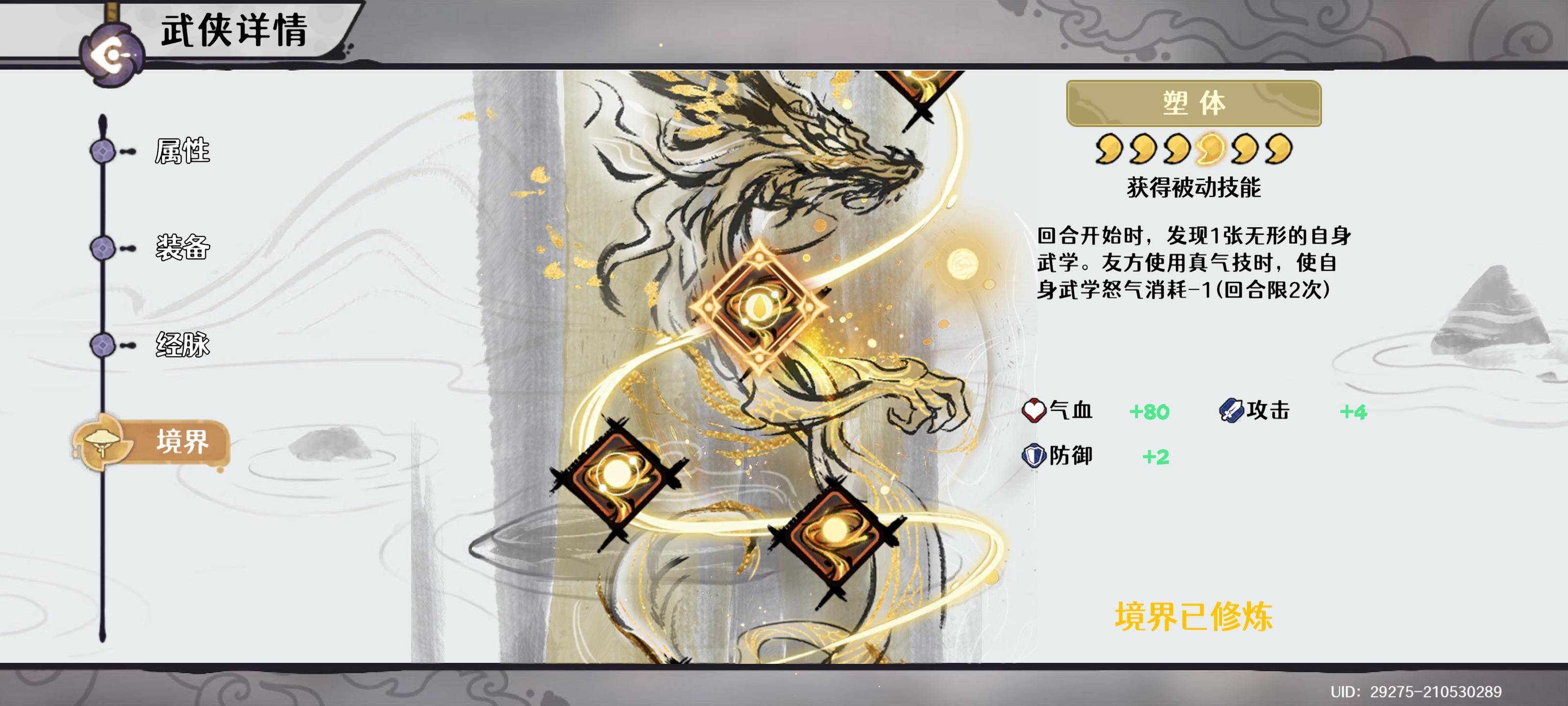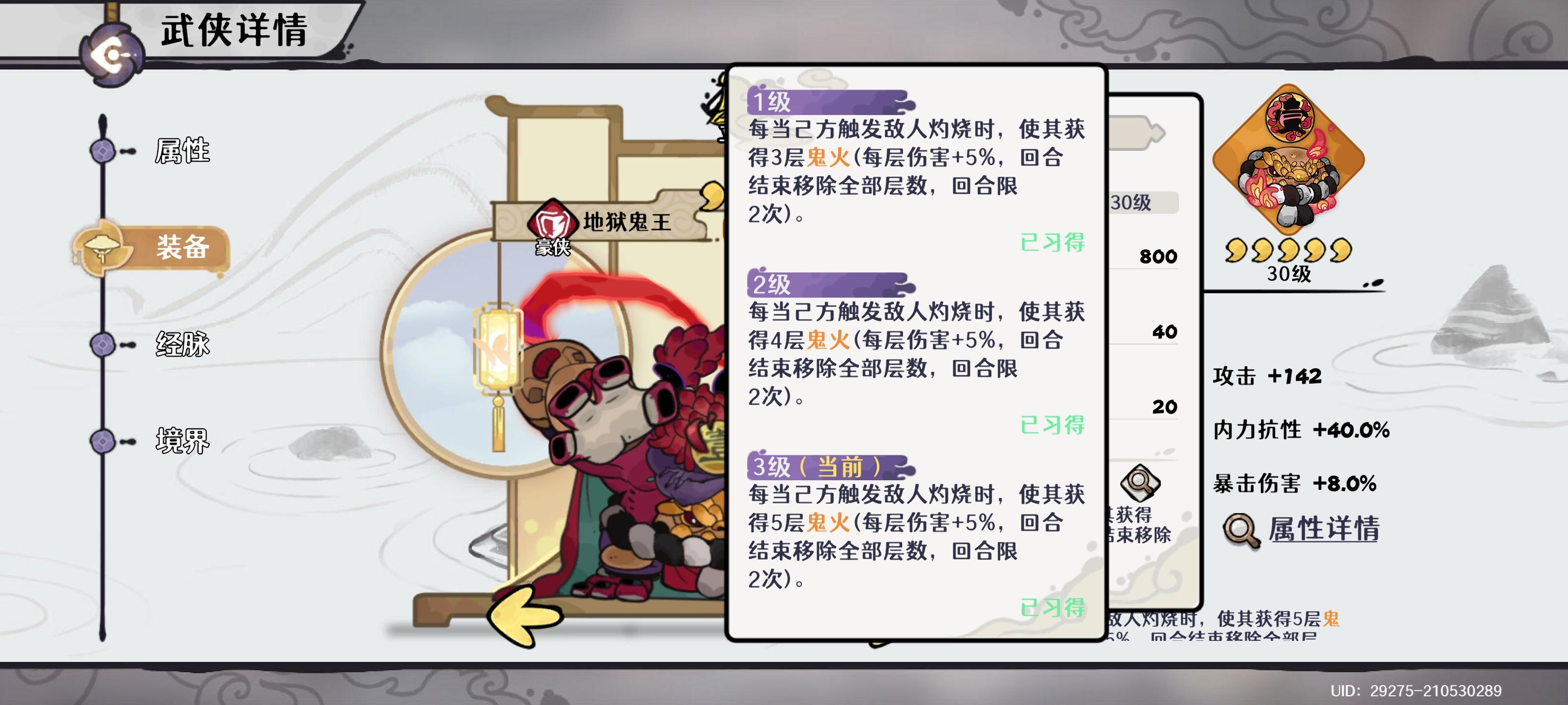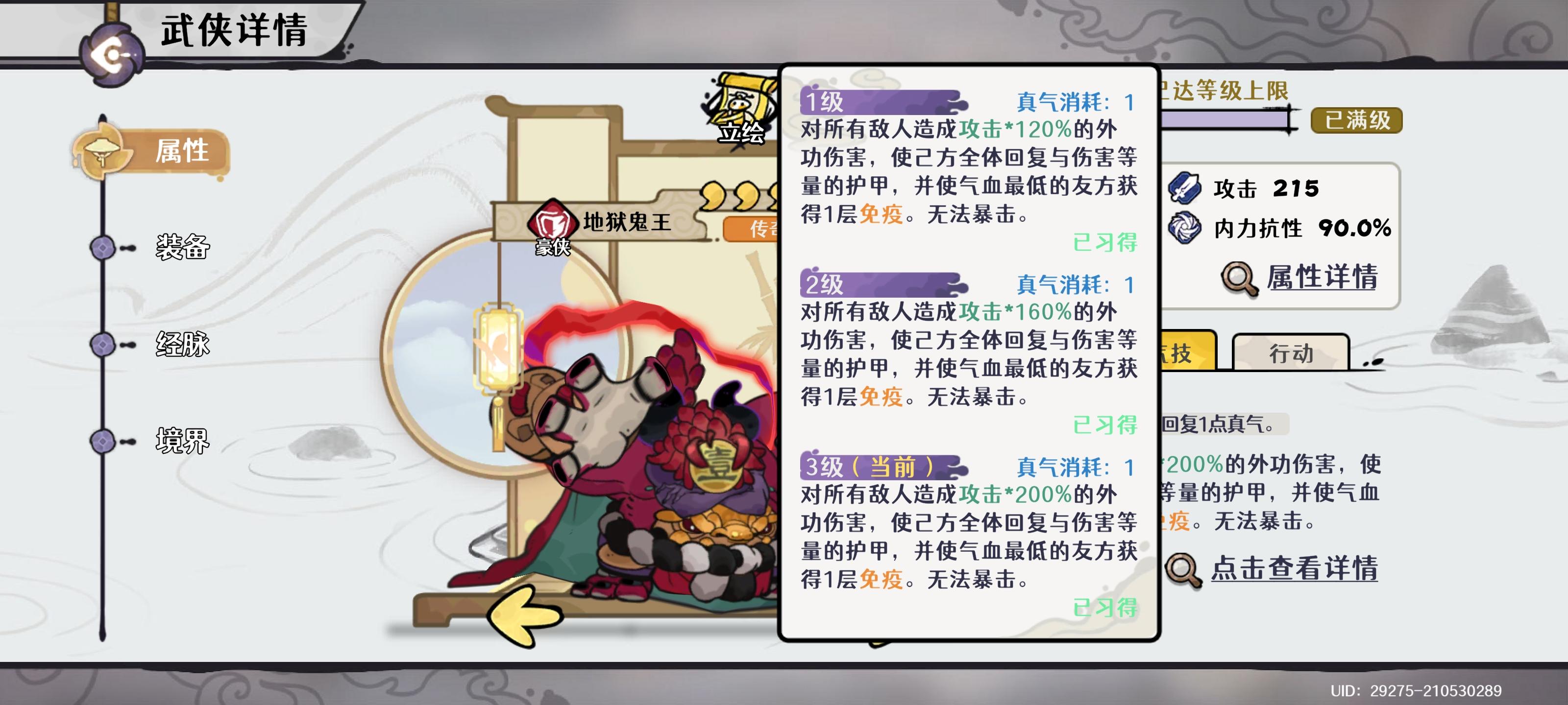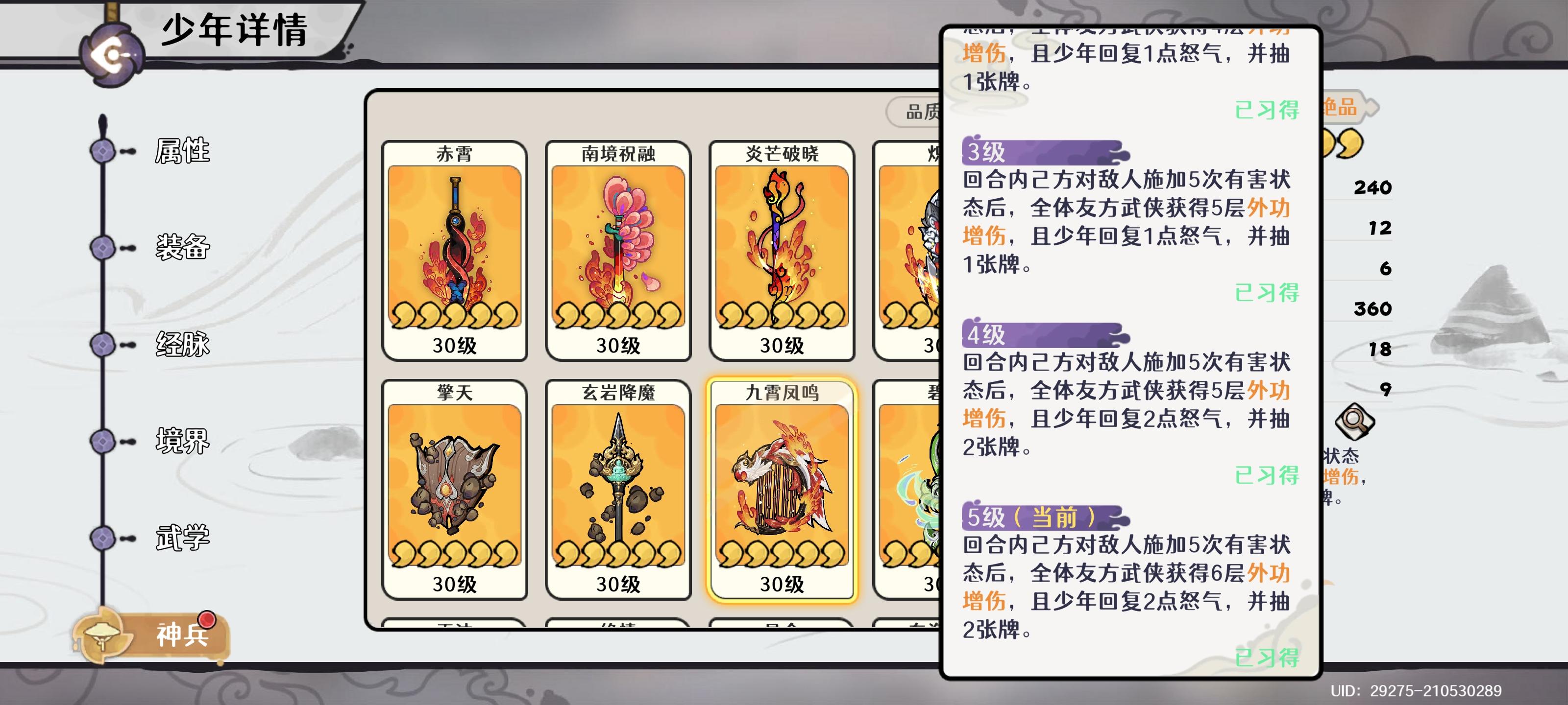 和狂岚类似,武侠神兵才是重点,给队友伤害加成。还是比狂澜优,两次触发就能达到最大值。玩鬼王可优先拉满神兵。