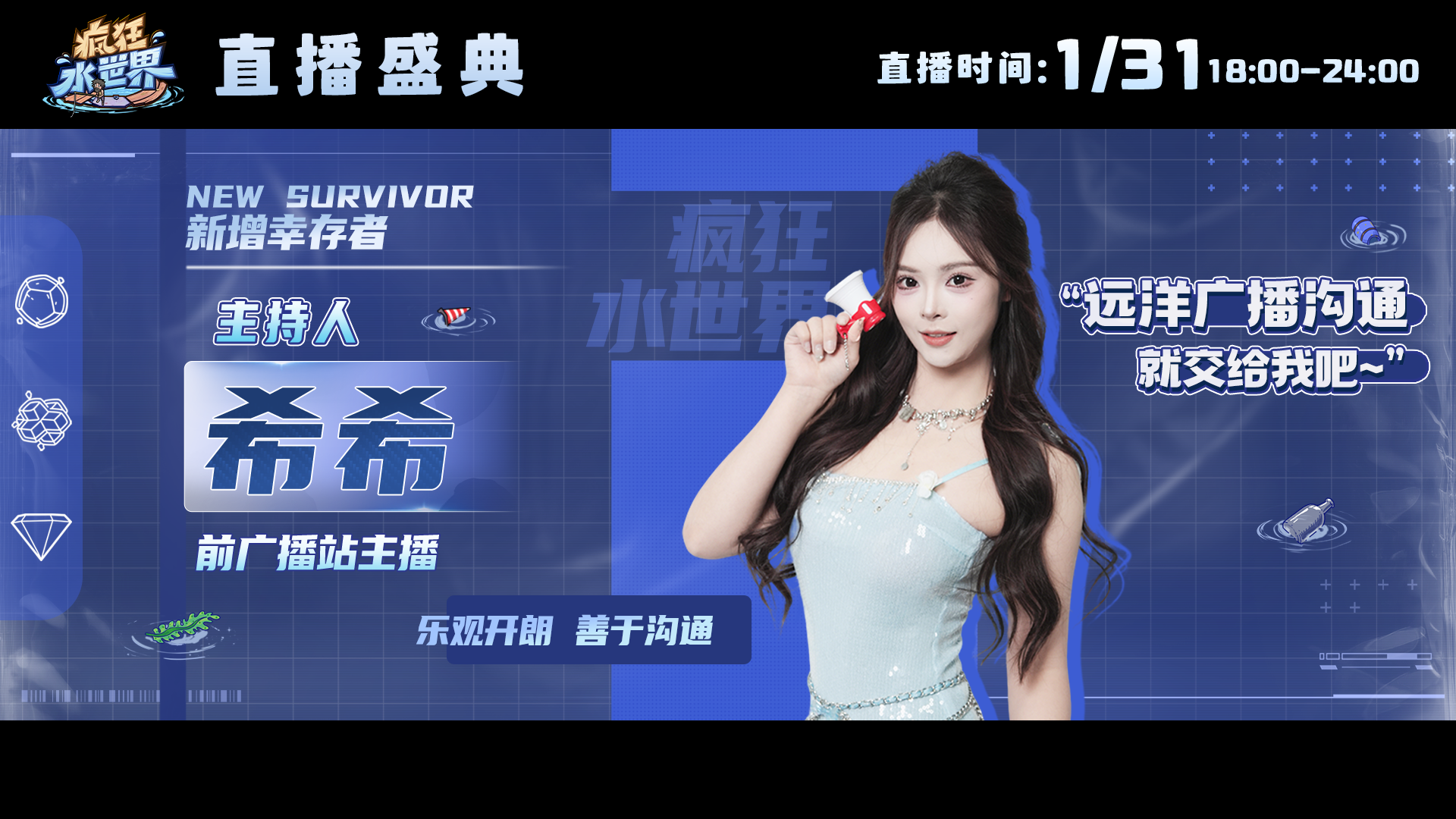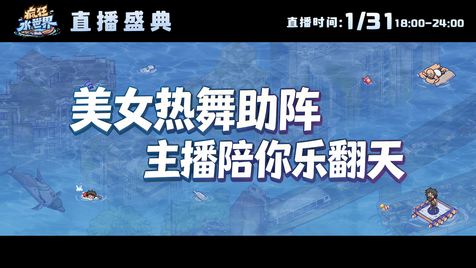 《疯狂水世界》1月31日晚18:00-24:00,直播盛典狂欢即将开场!抖音搜索《疯狂水世界》一键预约直播间!
