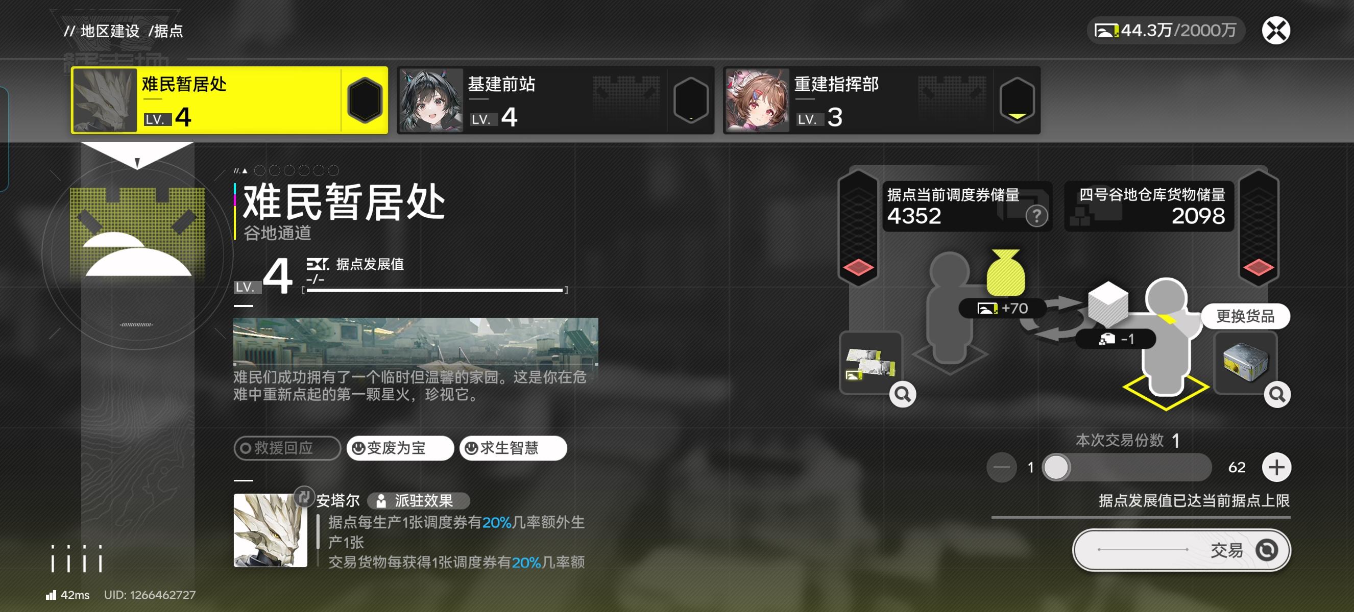 第一次玩这么久的大世界游戏,比较适合我不性急,有耐心的人,玩过其他大世界游戏,但总感觉玩法单调了,终末地符合我心里的需求。嘿(「・ω・)「,四号谷底基本毕业,建设等级就差一千点十二级了,就升级最后一个送货站的事儿了,然后四号谷地的所有小地图都连上了电桩(我真的服了我自己,硬生生把电线从枢纽区连接到了所有地图,连完了一看任务表,我靠,还有小基地可以建来拉线,但是我挺喜欢拉电线找地方放滑索过程,就是那连上电桩之后有个短的小动画就挺烦的),所有四方谷地的资源点和送货站都连上了滑索,以后拿资源很快了😁(笑死我了,印象最深刻的是供能高地的地主路传送标识那个碾骨战营那个口子那里的滑索到打boss的传送标记下面点的滑索直接连通了,我都懵了),全部做完后很有成就感的,自己的辛苦成果,开头确实繁琐,得要规划,幸好我喜欢规划,到了后面很开心。还有人物养成方面,我到了后面才知道怎么把战力最大化,特别是那个基质和武器的特性与人物的属性有关这一点和刷基质材料还不知道可以自己选择这一点,把我给整红温了