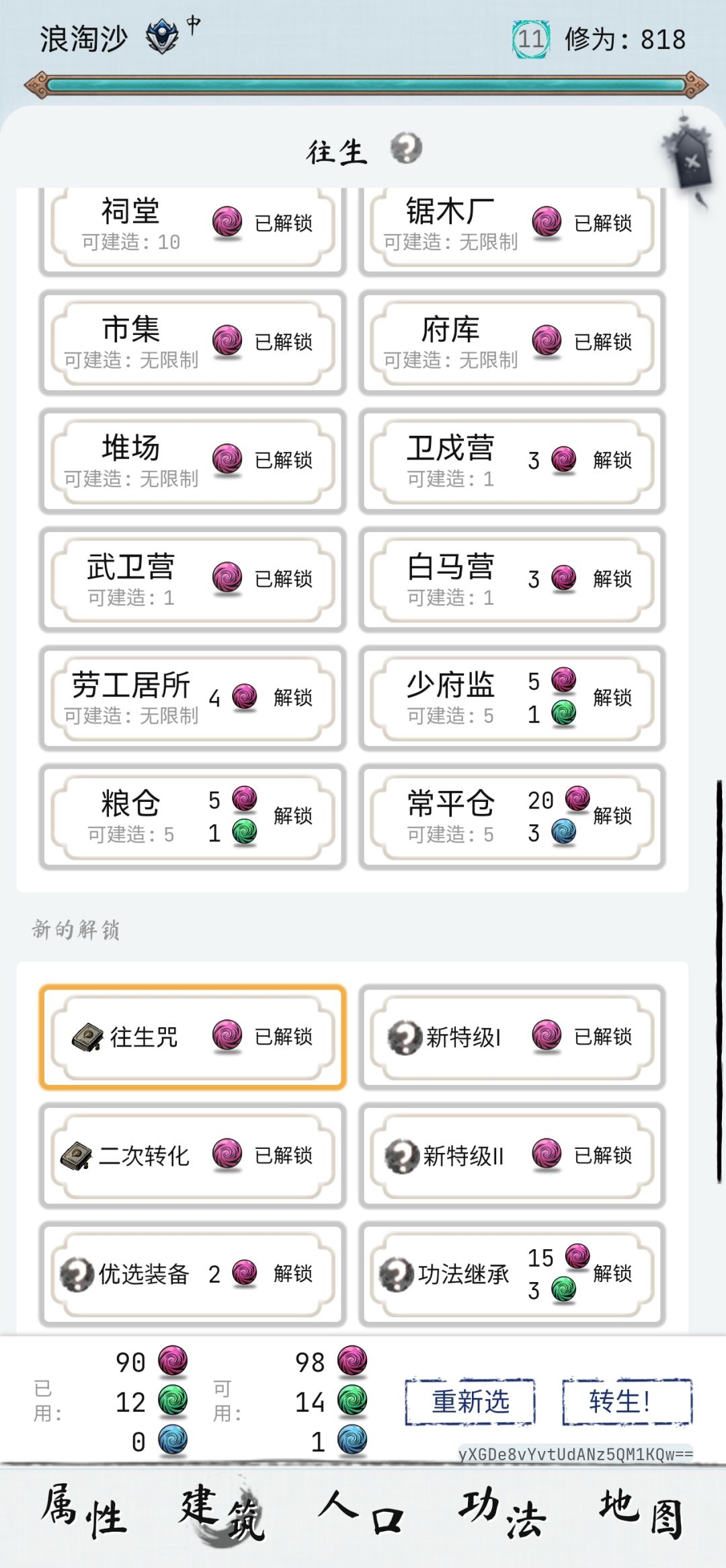 新的解锁只加前面4个,后面两个不加,存粹是浪费转生点。
