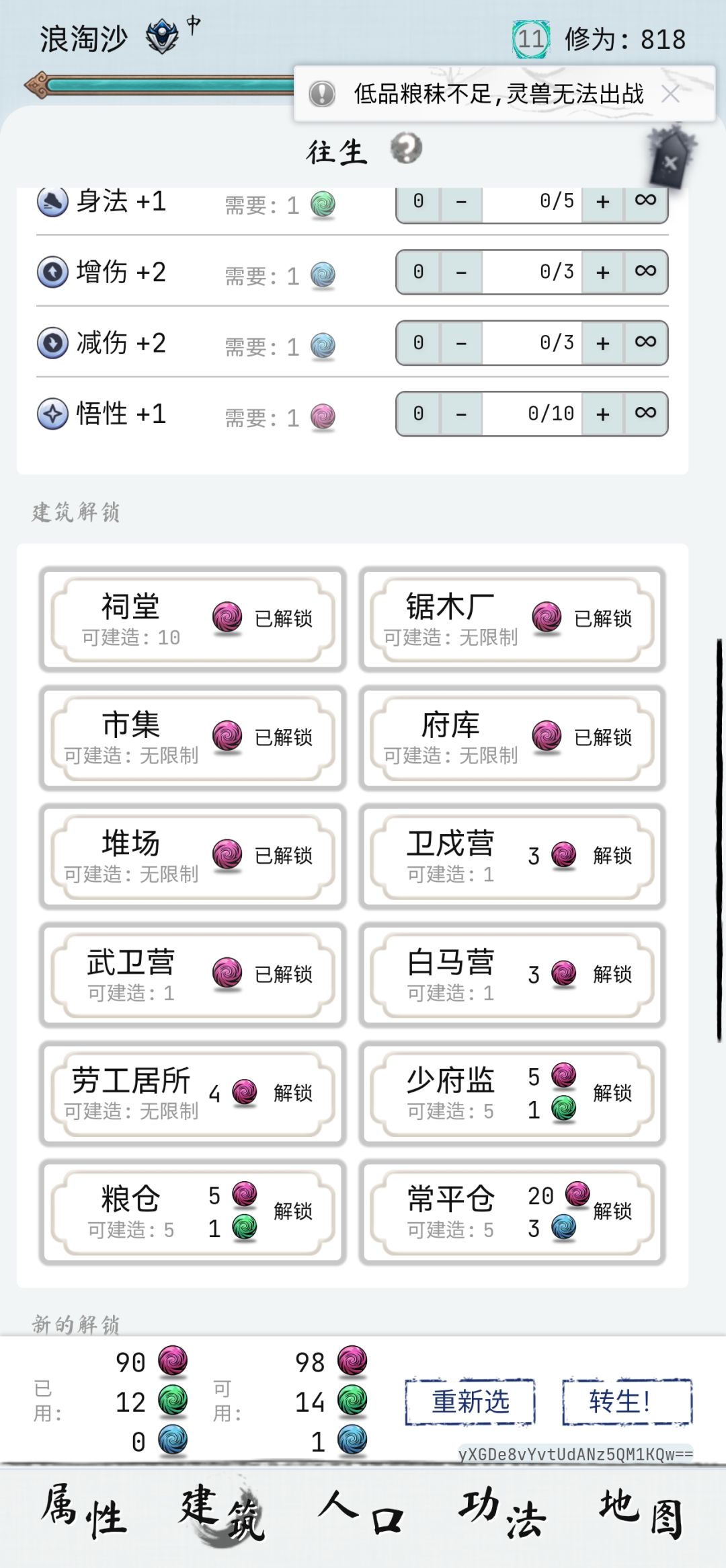 第十一转之后开始4-5转生,转生67次,所有转生点就够了。总转生78次。(转生点和风点还会多出来不少)