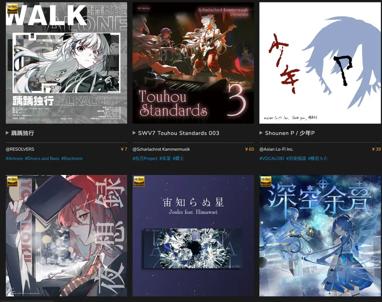 稍微一了解我才知道,原来在dizzylab上已经收录了近千张同人专辑,这些大多都是粉丝自发创作且分享出来的。这里面大多是以电子乐为主,改编了许多经典的同人作品,比如说东方Project、洛天依、蔚蓝档案什么之类的。