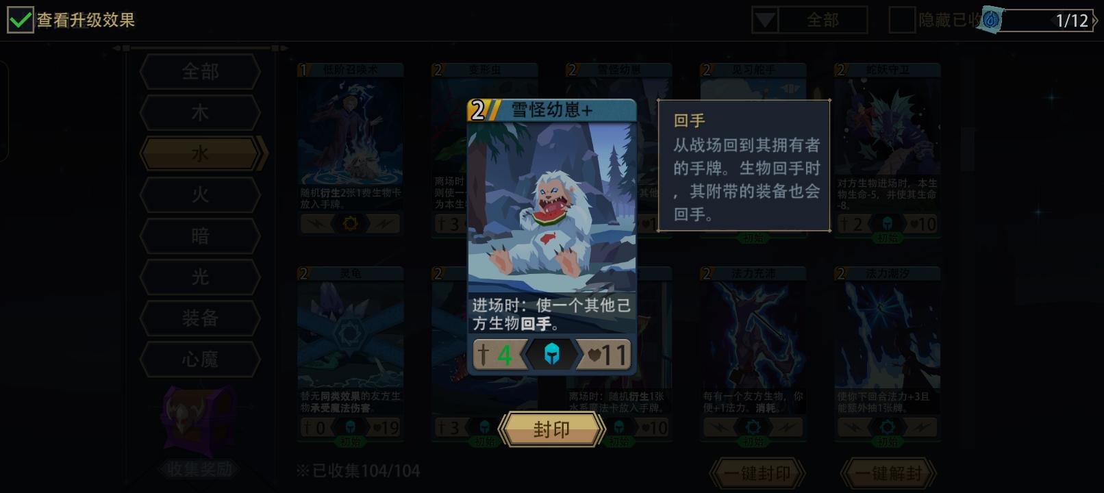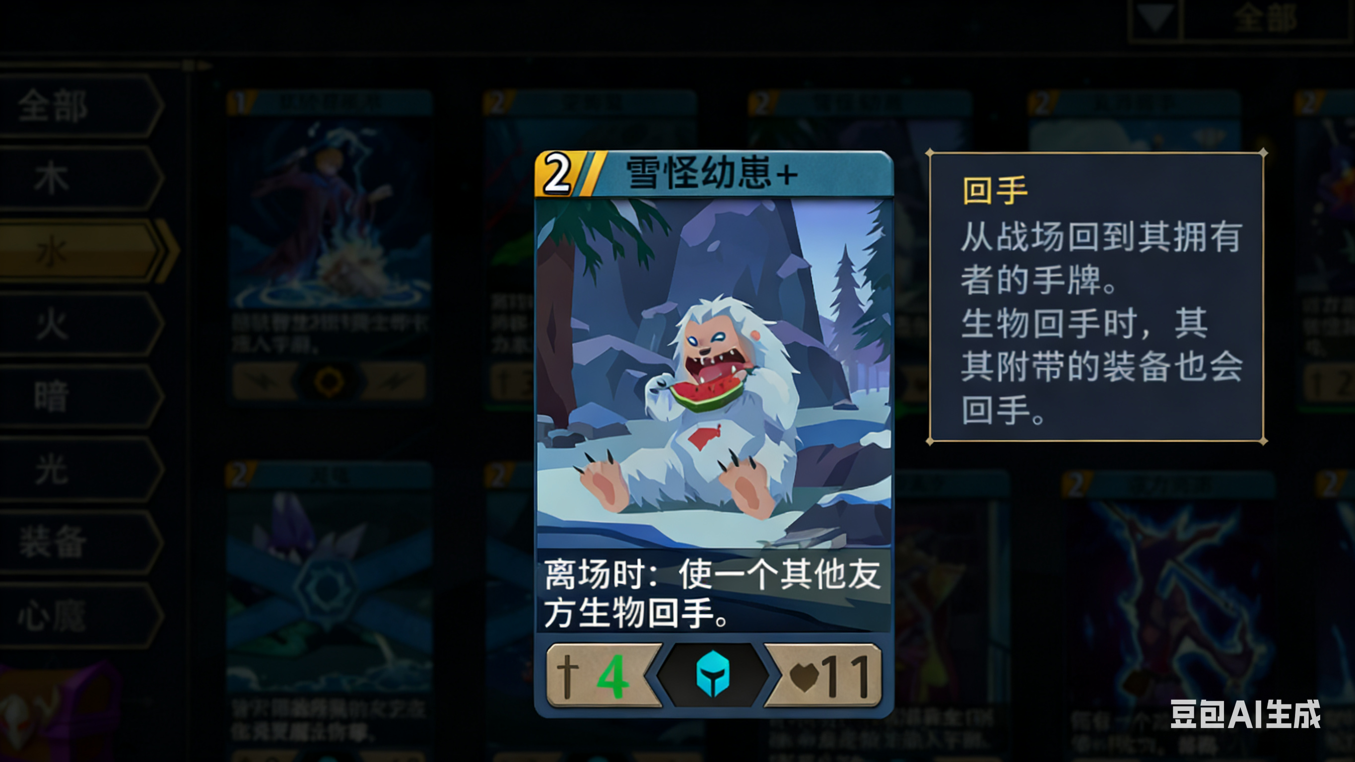 雪人幼崽,2费11血3攻,离场时:使一个其他友方生物回手
