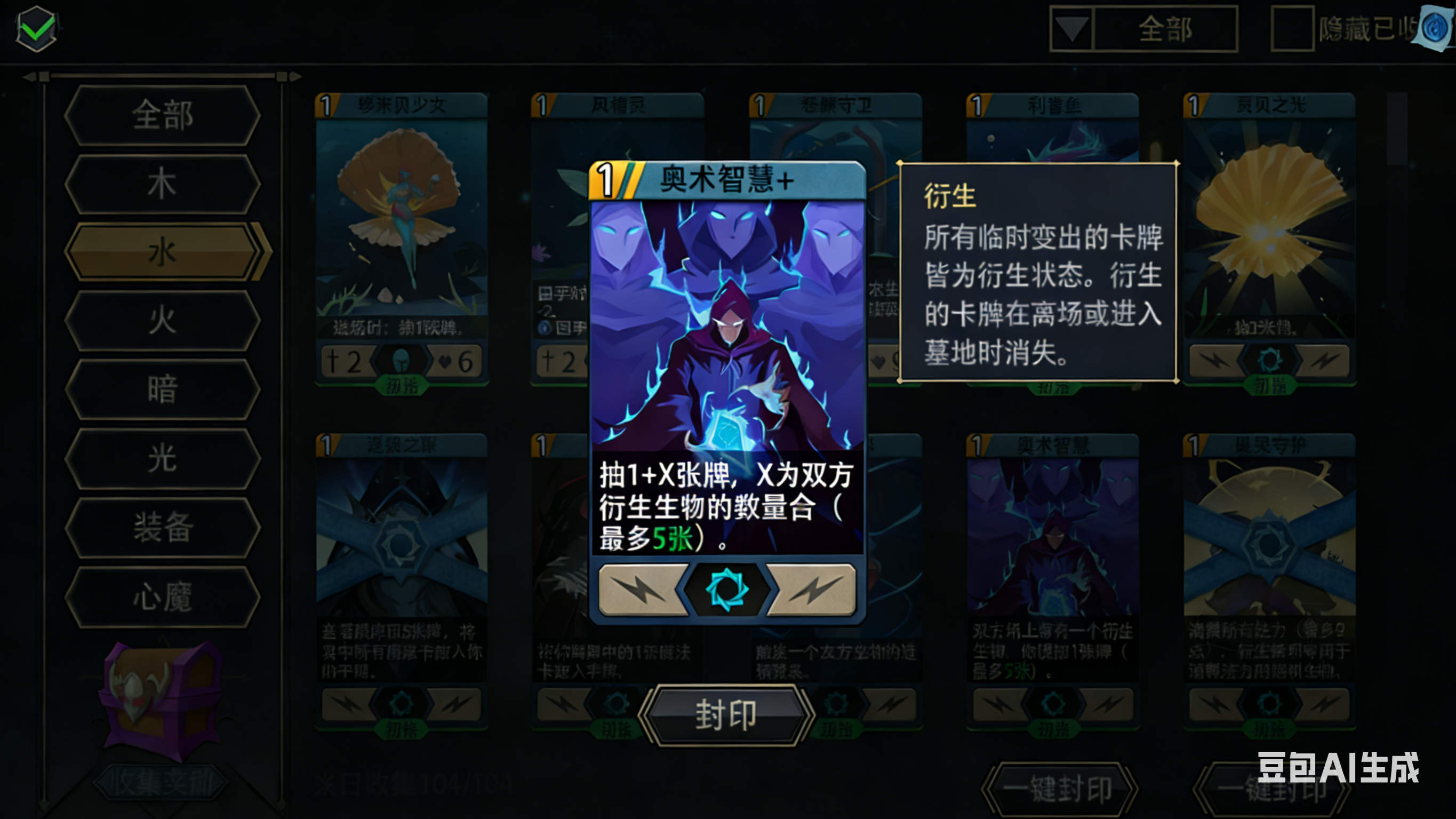 内鬼行为的体现一般是另一张水系卡万象源灵的技能效果和费用不足导致的空场(后者一般只出现在回手体系卡组)